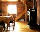 Гостевой бревенчатый дом «Типиницы» площадью в 100 квадратных метров построен совсем недавно. В доме спроектированы 3 спальни: 2 трехместных и 1 двухместная с парой кроватей для одного человека каждая. В доме обустроена кухня с печью, двумя плитами, холодильником. Пищу можно готовить как на газовой плите, так и на электрической. Гостиная меблирована двумя комфортными диванами и уютным камином. В доме установлен биотуалет, еще один (компостный) размещается на улице.