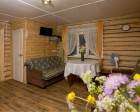 Здание рассчитано на проживание пяти человек. В доме выделено помещение кухни, укомплектованной необходимой бытовой техникой и утварью; работает ТВ, караоке; обустроен стол для игры в теннис; для стрельбы в тире есть пневмовинтовка; отапливается дом от печи, а система водоотведения проложена современная. К услугам гостей – баня, закрытая терраса, уютная беседка с мангальной зоной, площадка для детских игр, участки для рыбной ловли.