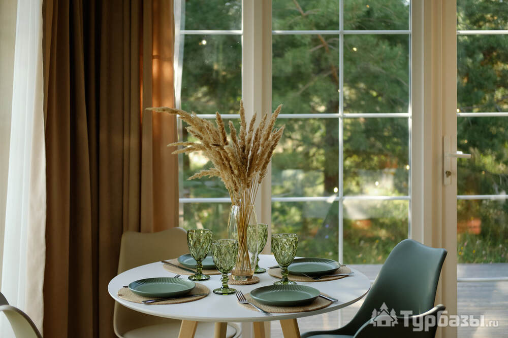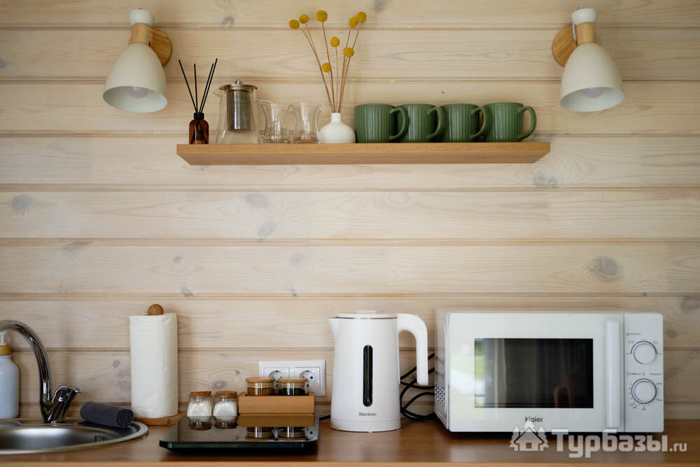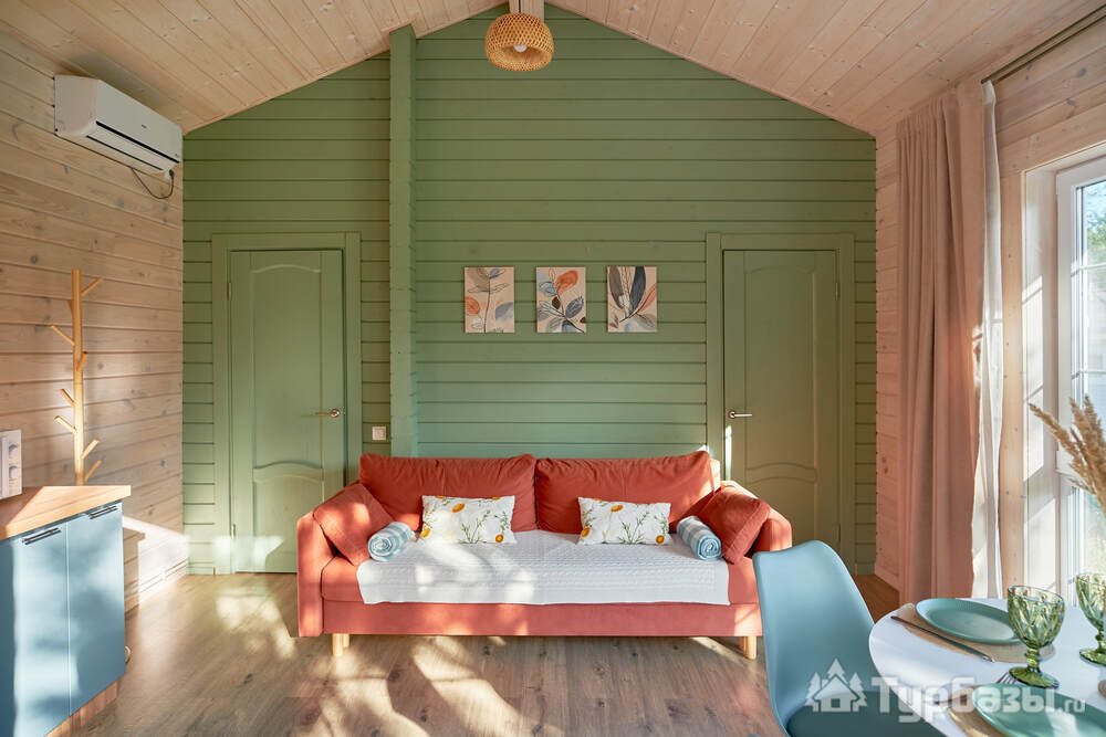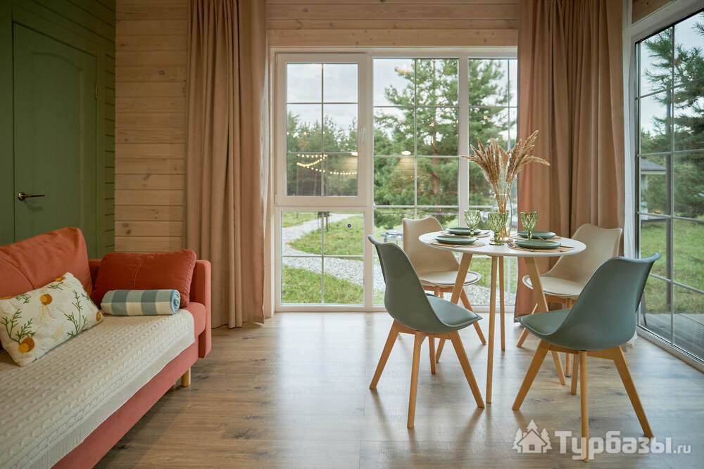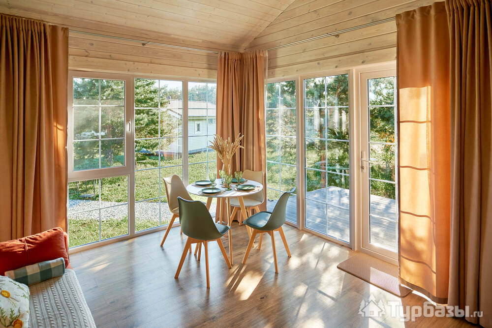 На базе размещены уютные деревянные домики в сосновом лесу — внутри есть всё для комфортного проживания (спальни, мини-кухня, санузел). На территории обустроены мангальные площадки, костровые зоны для вечерних посиделок. Одно из развлечений — дровяная баня с последующим погружением в фурако (купель), что отлично подходит для восстановления после прогулок.
