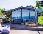 Через большие окна льется много естественного освещения, помещения всегда светлые. На террасе, прилегающей к дому, каждый вечер можно любоваться великолепными закатами, держа в руках бокал с ароматным вином.