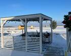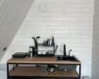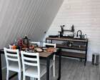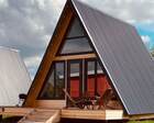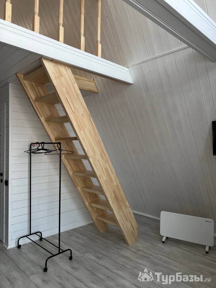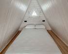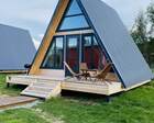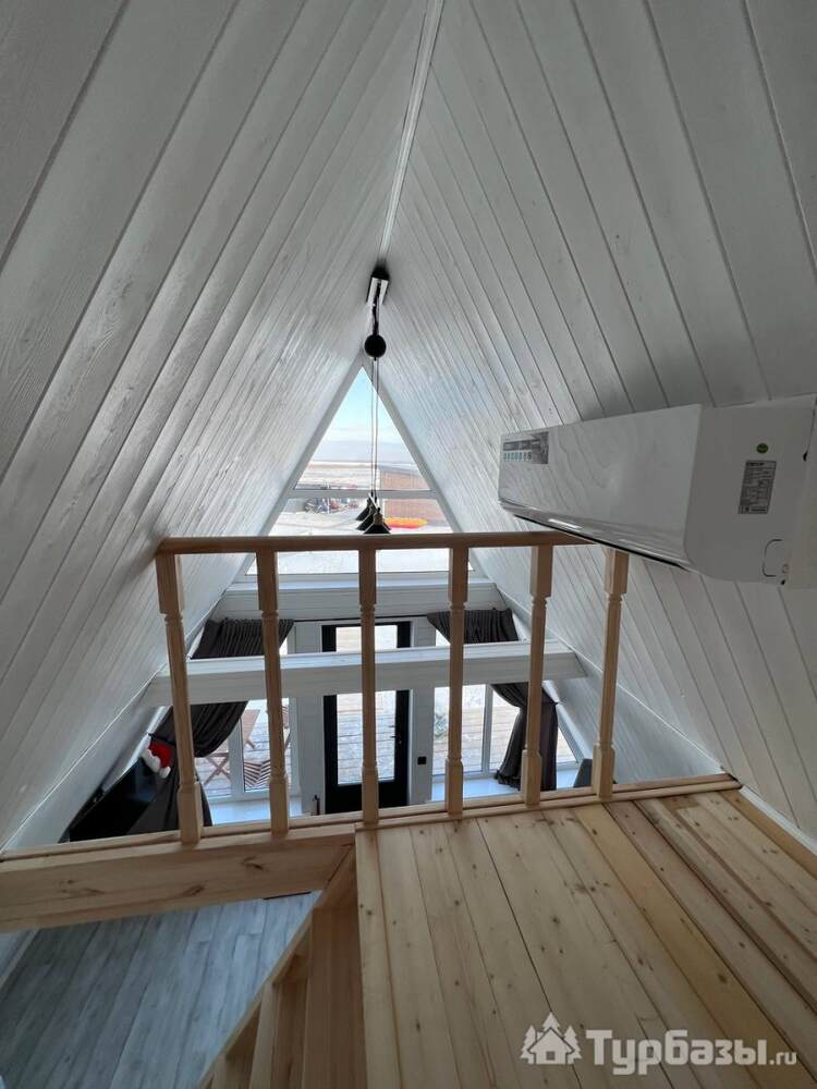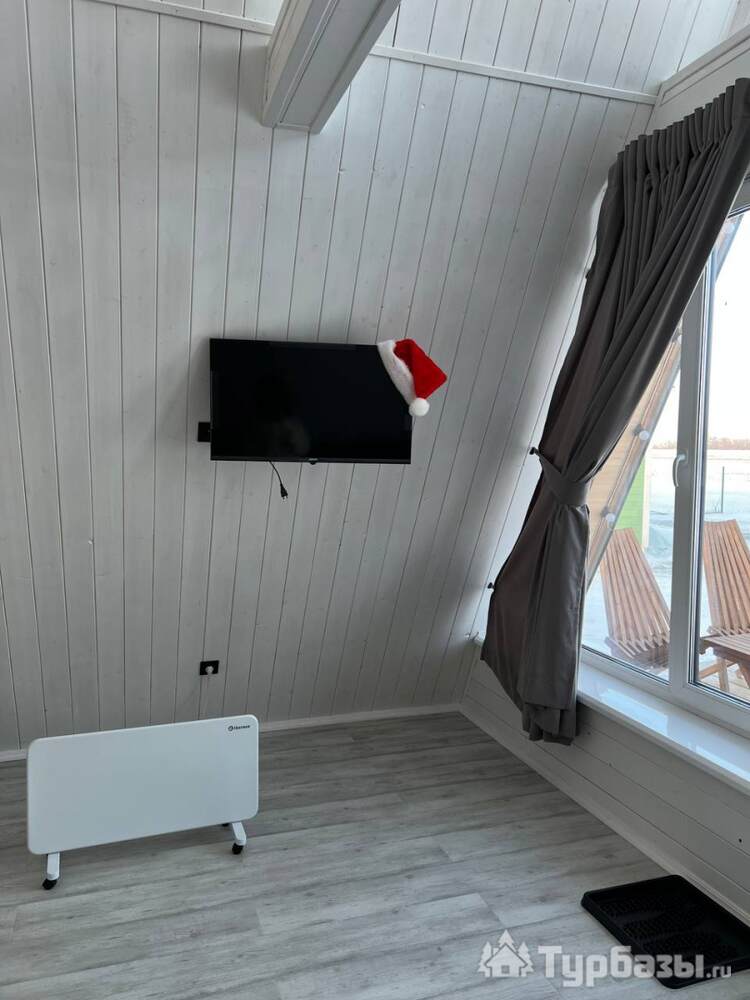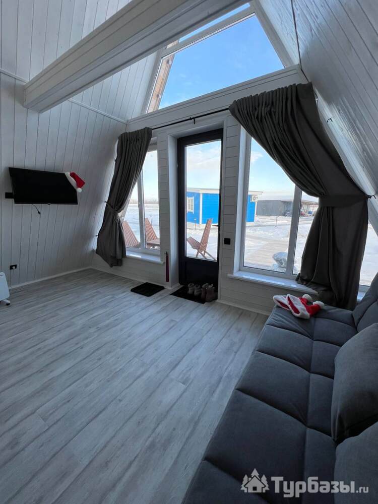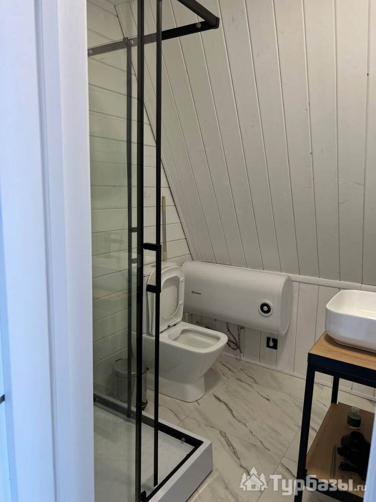 На территории — несколько различных вариантов проживания: A-frame (А-фрейм/сканди-домики) и компактные «барн-хаусы», у каждого — место для мангала и зоны отдыха. Есть отдельный банный комплекс с дровяной парной и горячим чаном, детские качели у воды. В домах есть базовая техника и всё нужное для комфортного проживания.