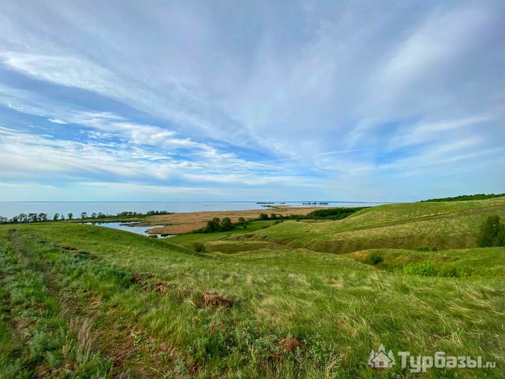 Глэмпинг находится в селе Лебедино, примерно в полутора часах езды от Казани — удобная логистика для уик-энда и однодневных выездов. Территория примыкает к береговой полосе реки и открывает хорошие виды на воду и соседние поля.