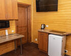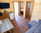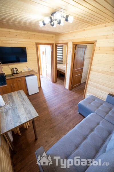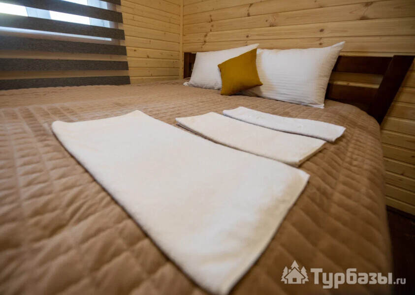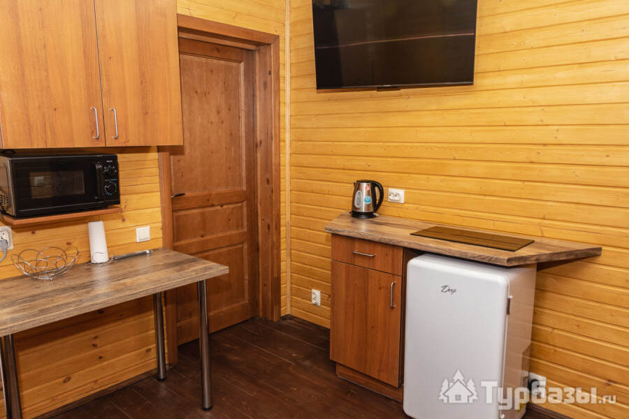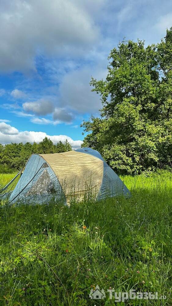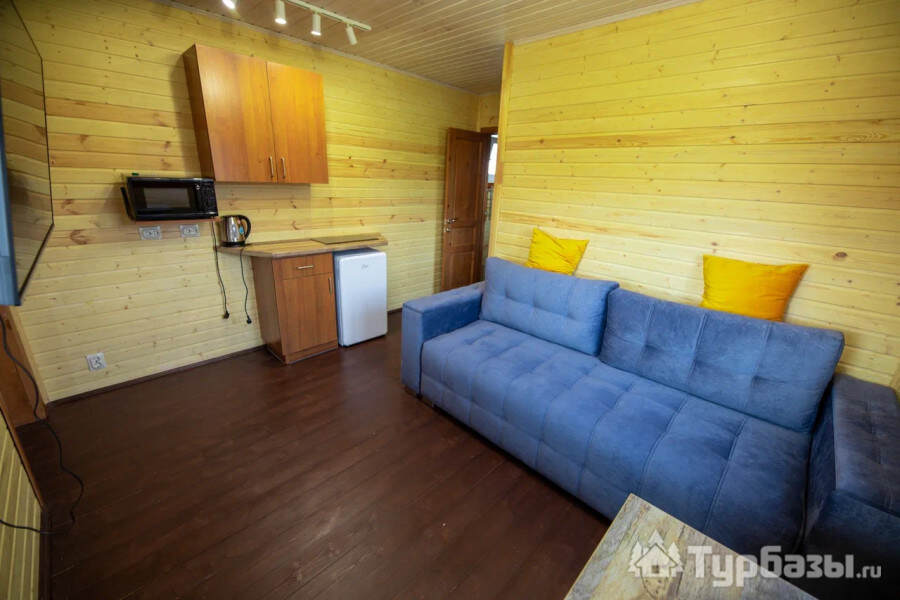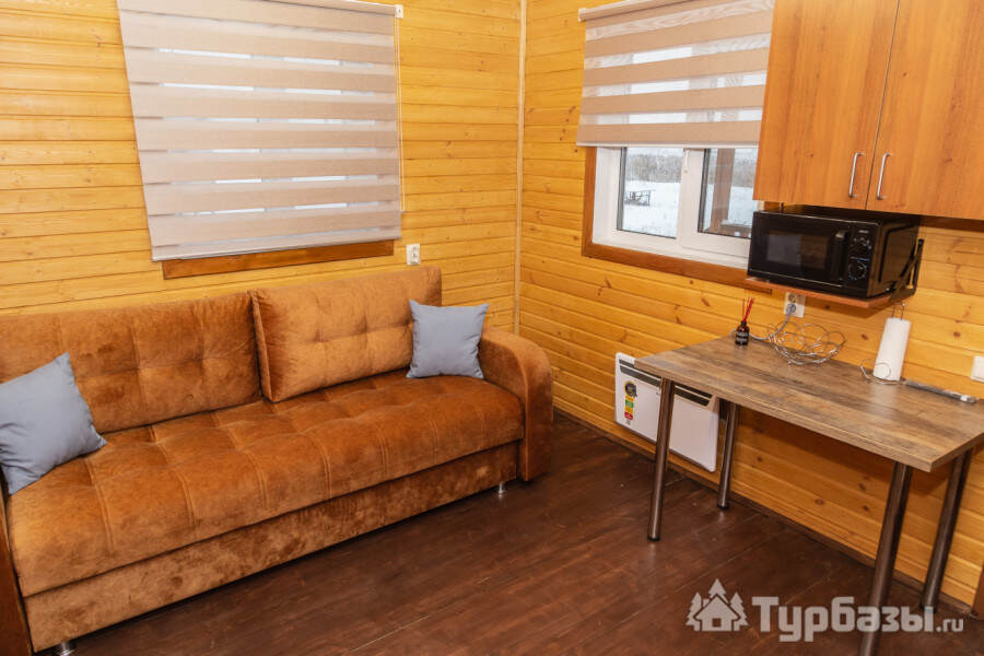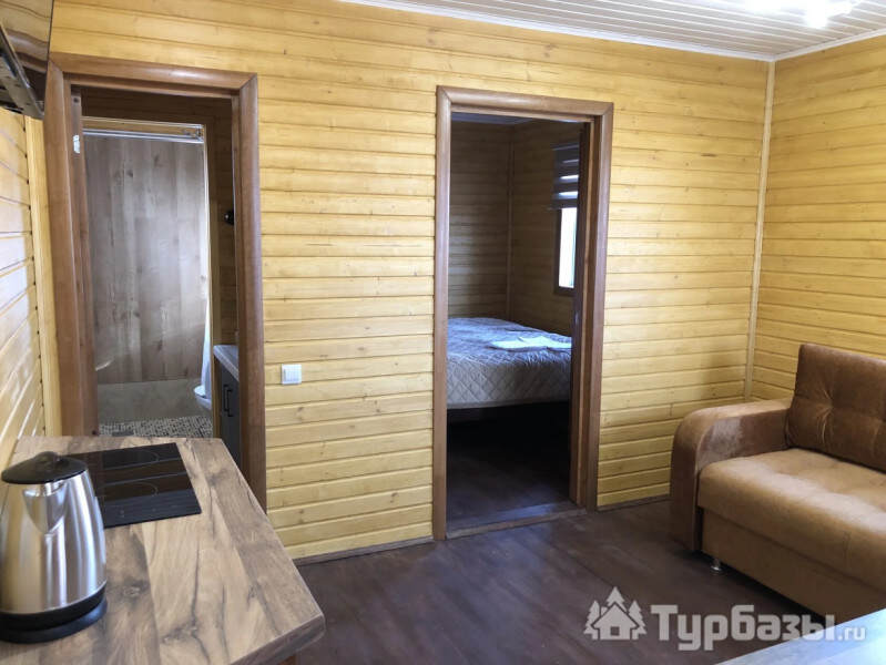 На базе — несколько автономных домиков с базовым набором удобств (спальни, кухня, санузел), веранды и мангальные площадки. На территории есть баня с чаном фурако, открытые зоны для пикников, парковка и Wi-Fi в общих зонах; администрация предлагает и варианты аренды палаток для тех, кто хочет «ближе к природе».