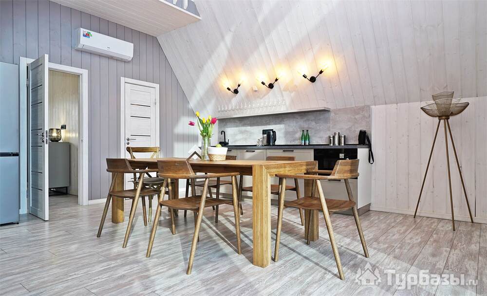 Комплекс состоит из нескольких домов с панорамными окнами и полностью оборудованными кухнями; есть VIP-дом площадью около 350 м2 с приватным спа-блоком. На территории работает спа-центр, предлагаются банные процедуры и аренда домиков «под ключ».