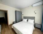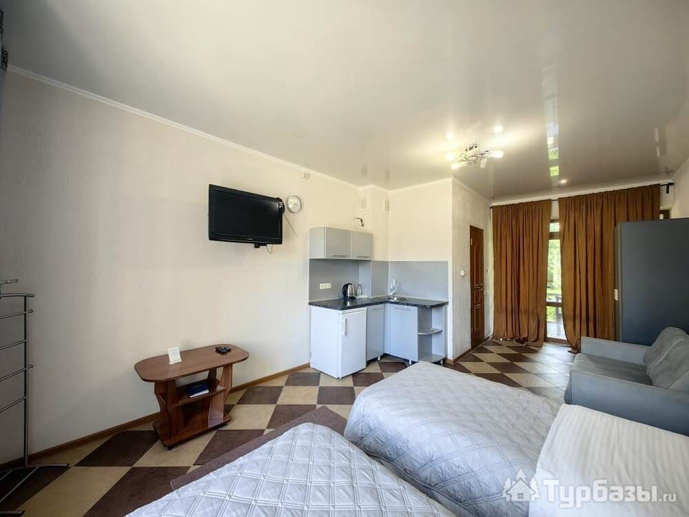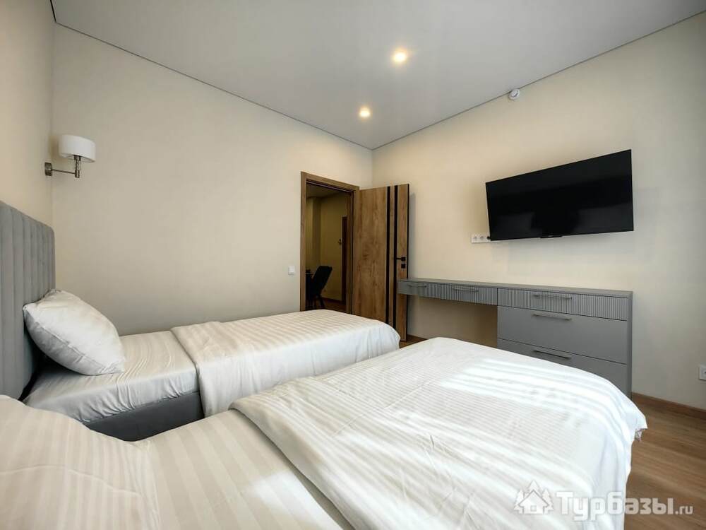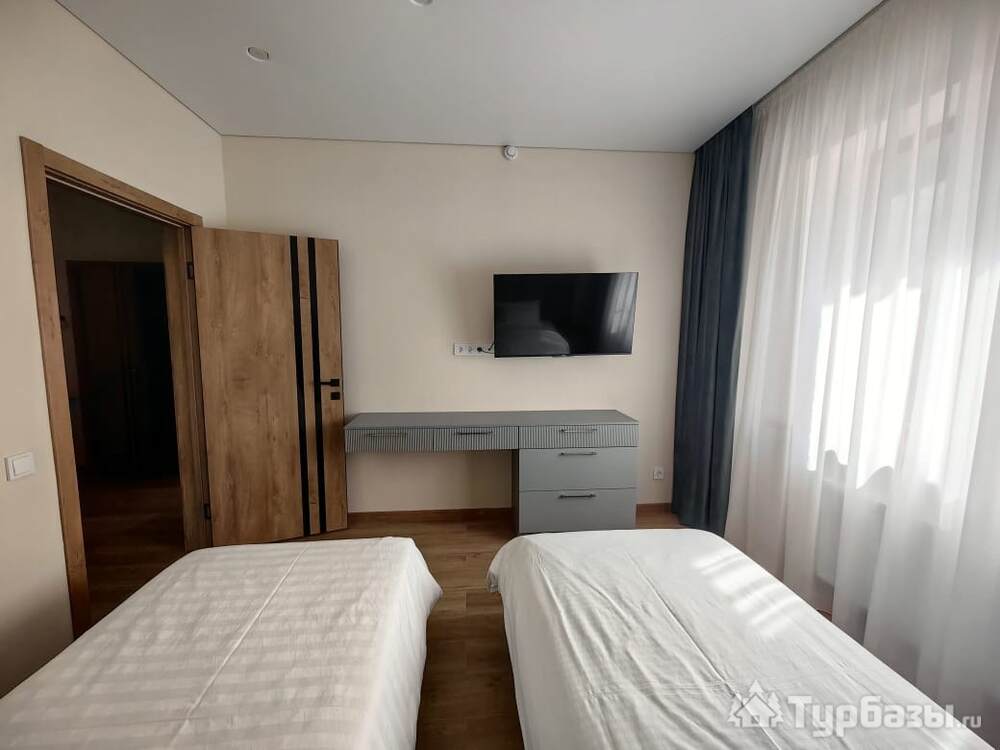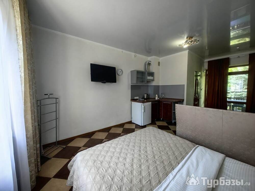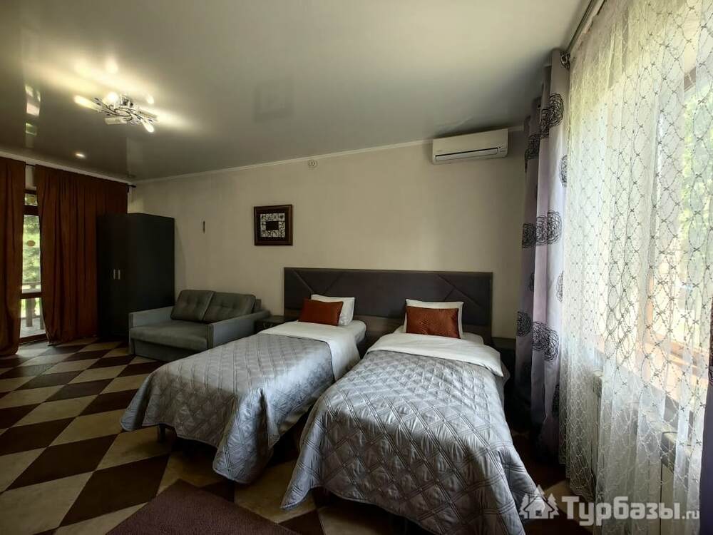 «Алмаз Аква Плаза» сочетает комфорт городской гостиницы и функциональность загородной базы: в распоряжении гостей — однокомнатные и трёхкомнатные номера с полным набором удобств, а также отдельные домики для компаний и семей. Во всех вариантах предусмотрены сплит-системы, телевизоры, санузлы и удобная мебель; из некоторых номеров открываются виды на зелёные насаждения и водную гладь. Просторные террасы и закрытые гостиные дополняют ощущение уюта — форматы размещения подойдут как для короткой ночёвки, так и для продолжительных выходных с семьёй.