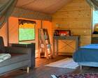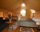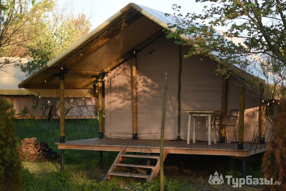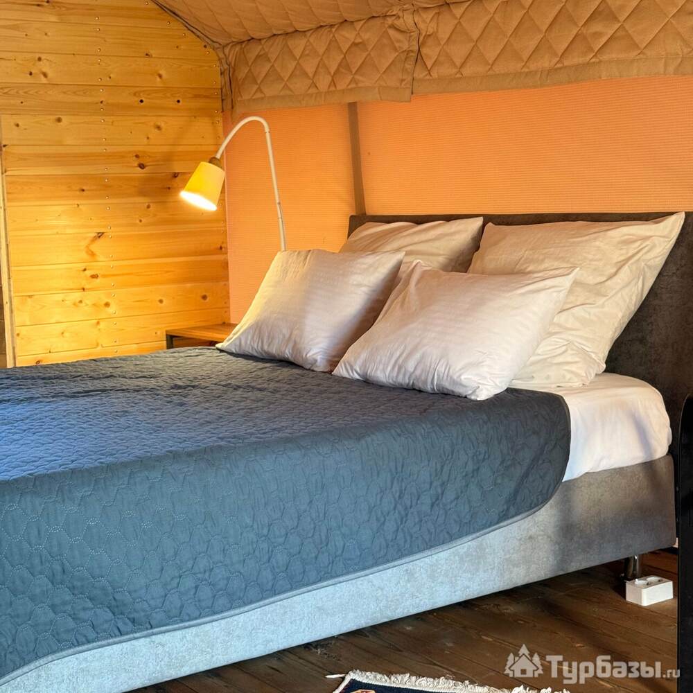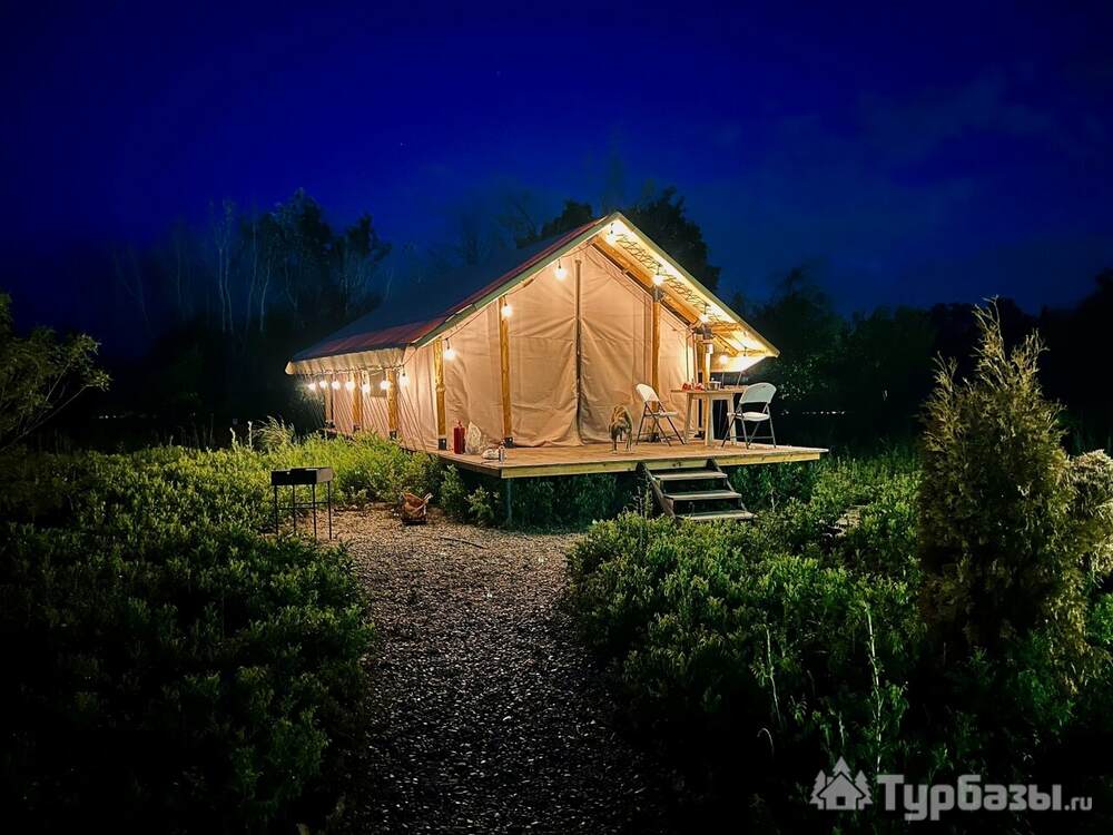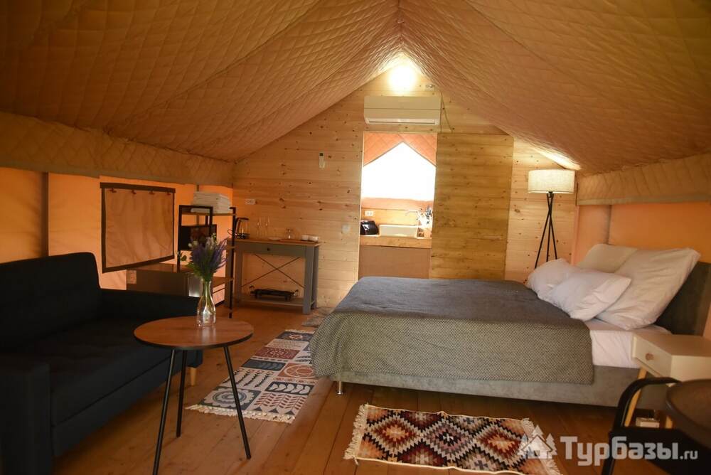 На базе небольшое количество номеров — всего около 9 единиц — оформленных в стиле глэмпинга: комфортные домики/шатры с базовой гостиничной оснасткой. Варианты размещения ориентированы на пары, семьи и небольшие компании; большинство домиков имеют террасы и собственные мангальные зоны у выхода.