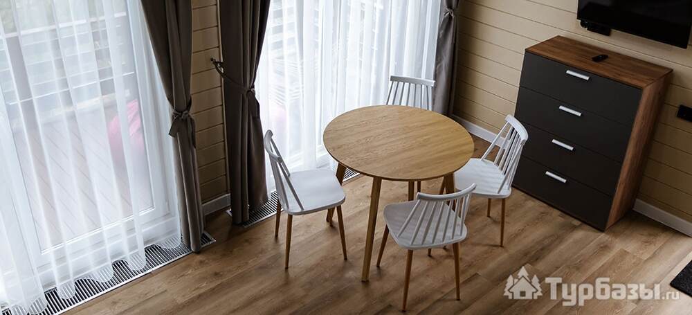 Курорт предлагает несколько форм размещения, чтобы подстроиться под формат визита — от семейных номеров в отеле до автономных домиков A-Frame:
