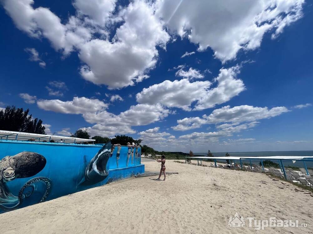 - Пляж и береговая линия: широкая пляжная полоса у Азовского моря с пологим входом подходит для семейного купания; на пляже организованы места для отдыха и сезонные услуги.