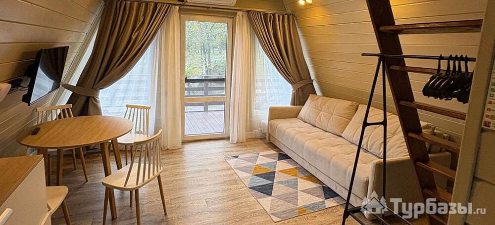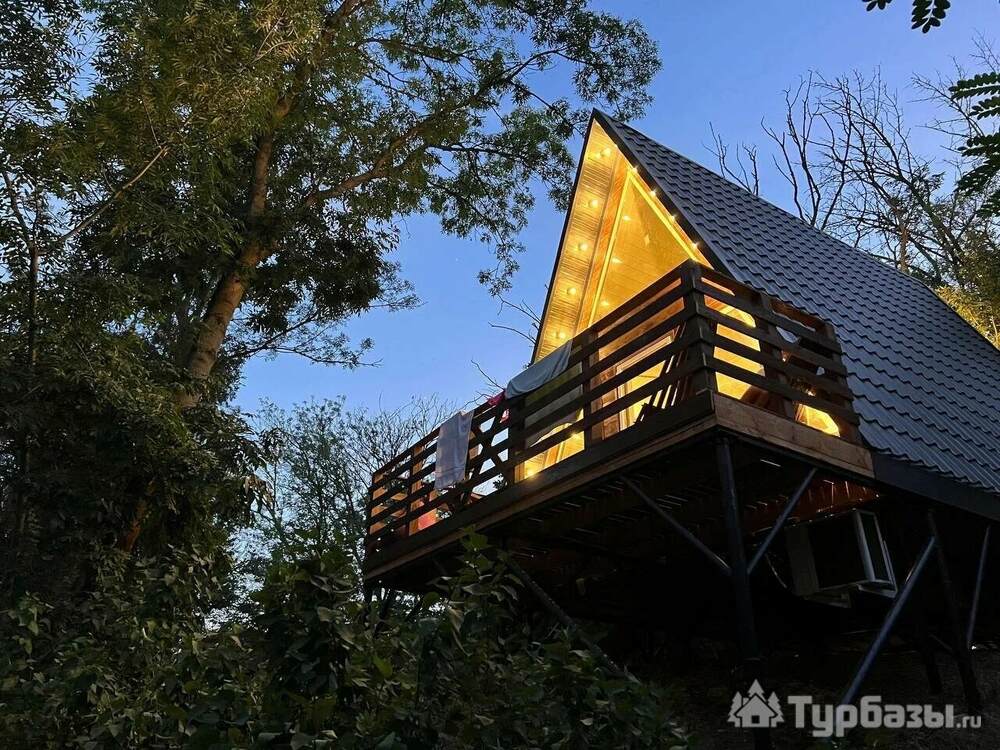 - A-Frame домики — двухэтажные домики с мини-кухней, террасой и видом на зелёные зоны/море; их формат рассчитан на 2–4 гостей и удобен для семейных мини-ретритов.