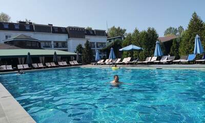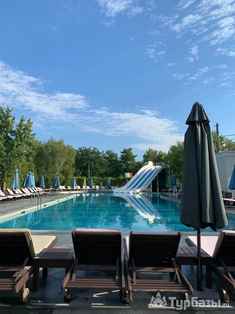- Открытый плавательный бассейн с зоной шезлонгов и летней террасой — центр летней рекреации;