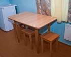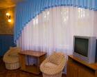 В номере: двуспальная и полутороспальная кровать, телевизор, стол со стульями, холодильник.