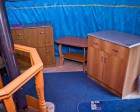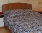 В номере: двуспальная кровать, стол со стульями, телевизор. Удобства рядом в соседнем теплом корпусе.