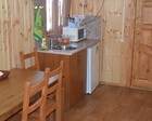 Деревянные коттеджи разбросаны по территории в тени деревьев, каждый имеет оборудованную кухню, санузел, вместительные спальни.