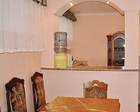 Спальня : 2 кровати, тумбочка, платяной шкаф. Гостиная: стенка с посудой, два кресла, диван, телевизор. Кухня: холодильник, стол, стулья, плита, шкаф и стол для посуды. Душ, туалет в доме.