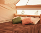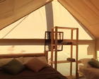 На базе для проживания установлен палаточный лагерь, где можно отдохнуть в двухместной палатке со многими удобствами. Палатка необычная и представляет собой сафари-тент, где есть вход и деревянная основа. Она делится на жилую и кухонные зоны. Также в ней есть окно с москитной сеткой и открытая веранда.