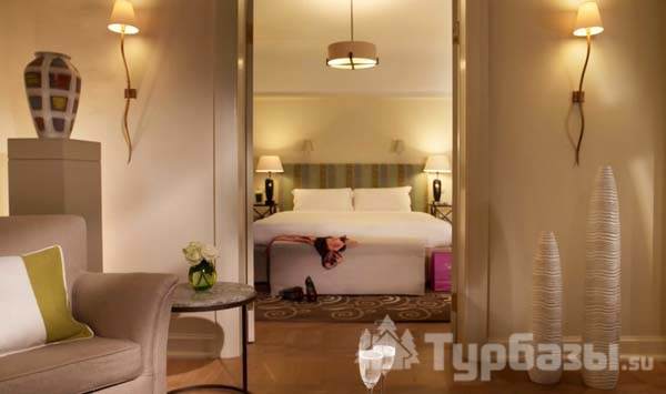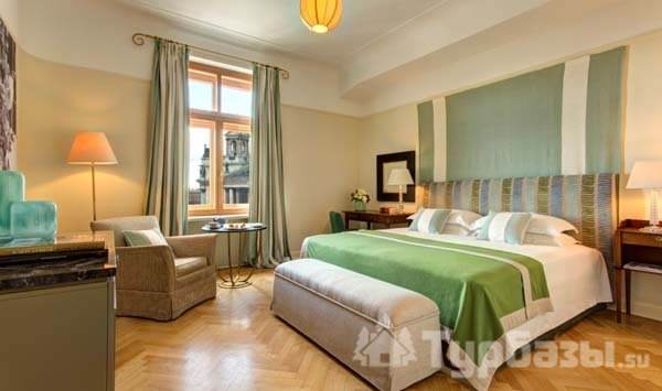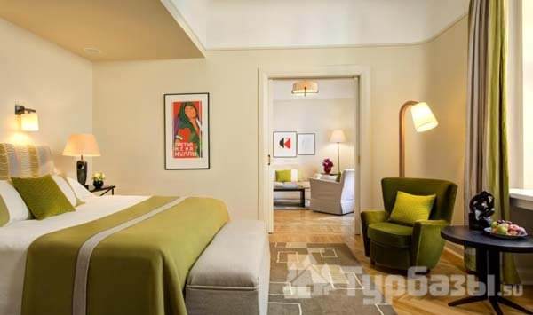 Дизайн комнат выполнен в классическом стиле. Натуральный паркет, резная мебель, мягкие пастельные цвета. На кроватях – льняные покрывала. Освещают комнату соответствующие интерьеру классические светильники и бра.
