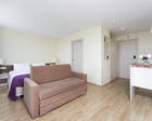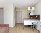 Площадь: 26 кв.м. Помещение с двумя зонами либо состоят из двух отдельных комнат. Одна из комнат или зон служит гостиной и кухней, а вторая — спальней.