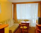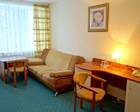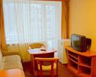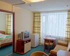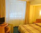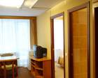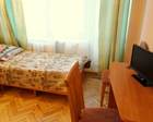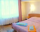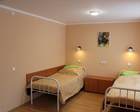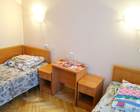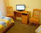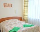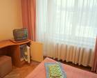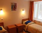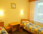 Лоджия. Две 1,5-спальные кровати, телевизор, 2 прикроватные тумбочки, журнальный стол, 2 стула, графин и 2 стакана, 2 бра, зеркало, прикроватный коврик, шкаф платяной. Санузел: совмещенный. Душевая кабина, зеркало, раковина, унитаз.