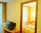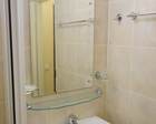 Лоджия. Спальня: 2-х-спальная кровать, телевизор, холодильник, Графин и 2 стакана, стол – тумба, телевизор, 1 стул, 1 кресло-ракушка, 2 прикроватные тумбочки, 2 бра, зеркало, шкаф платяной, прикроватный коврик. Санузел: совмещенный. Душ без поддона со шторой, зеркало, раковина, унитаз.