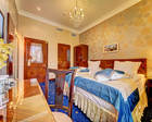 Отель «Золотой треугольник» отличает эксклюзивный интерьер, который создавался известными мастерами-дизайнерами, призерами фестивалей европейского масштаба. В оформлении задействованы только качественные натуральные отделочные материалы: