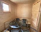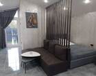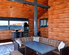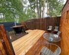 Во всех домиках красивая и уютная обстановка. На передней веранде зона для отдыха, которая укомплектована креслом-качелью, столиком и двумя креслами. На задней веранде зона барбекю. В каждом домике есть все необходимое для комфортного проживания: Зона гостиной: шкаф-купе, угловой диван, журнальный столик, барная стойка и стулья, телевизор. В спальной зоне: двуспальная кровать, уютное кресло. Для маленьких детей предоставим кроватку с бортиками и постельное белье.