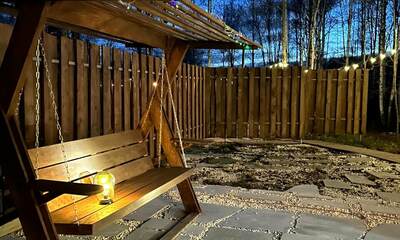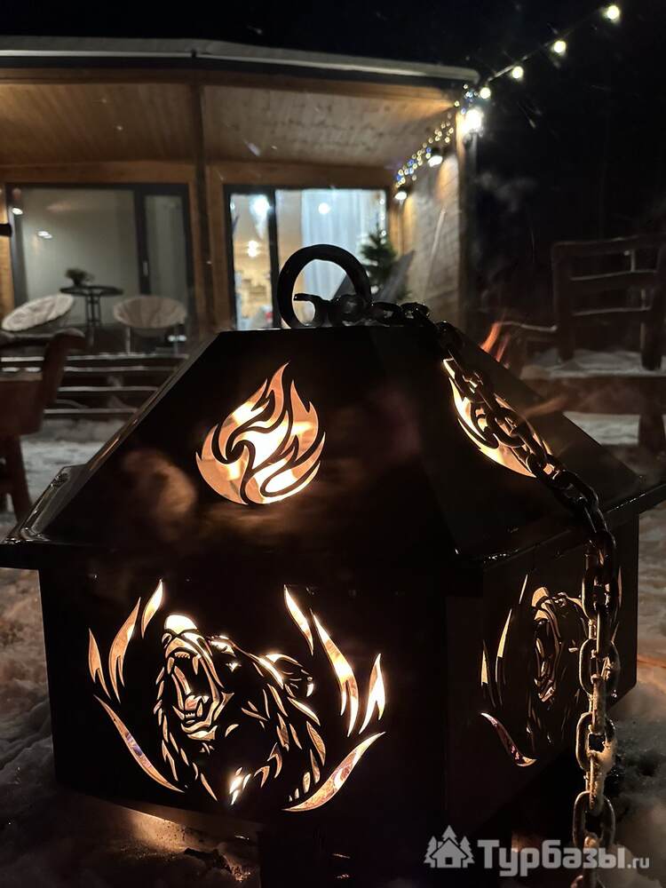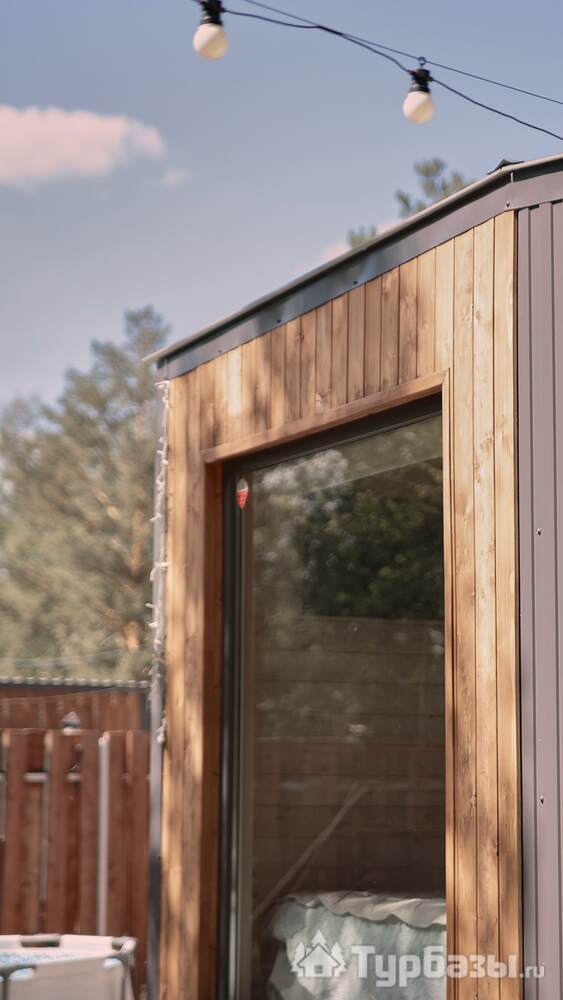 - Территория огорожена и освещена гирляндами; есть парковка у домиков.