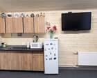 - Прихожая, 2 двухспальные кровати в разных комнатах, двуспальный диван на кухне, санузел с душевой кабиной, средства личной гигиены, банные полотенца, фен, кухонный гарнитур с варочной поверхностью и посудой, обеденная зона на 6 персон, холодильник, микроволновая печь, телевизор.