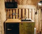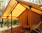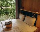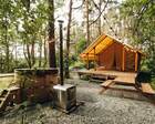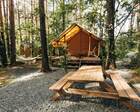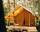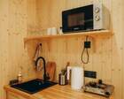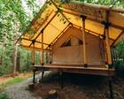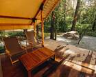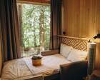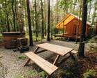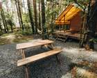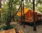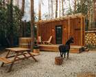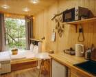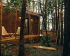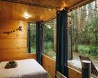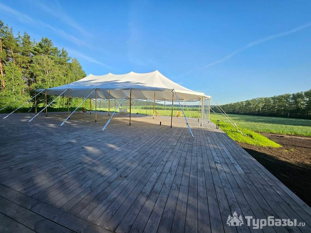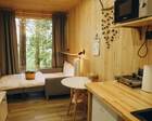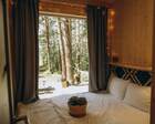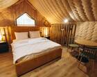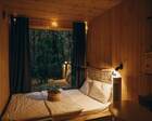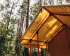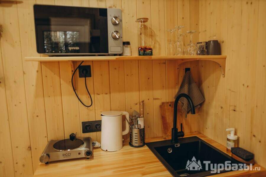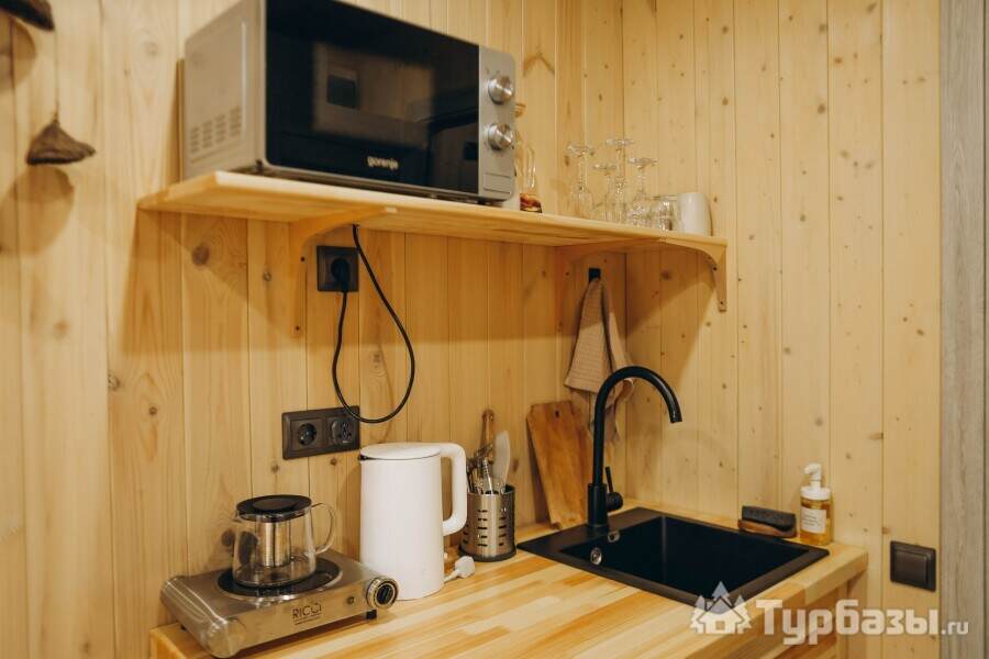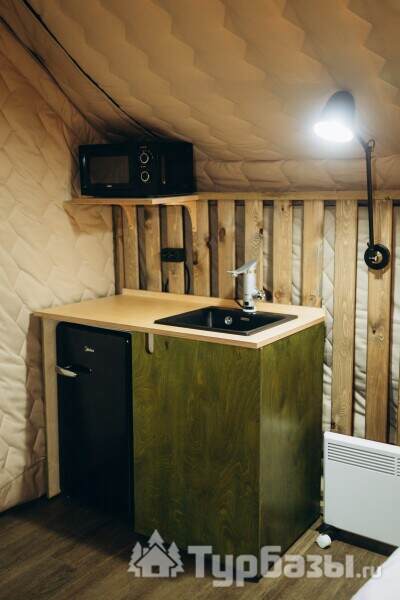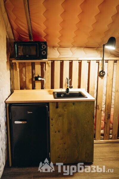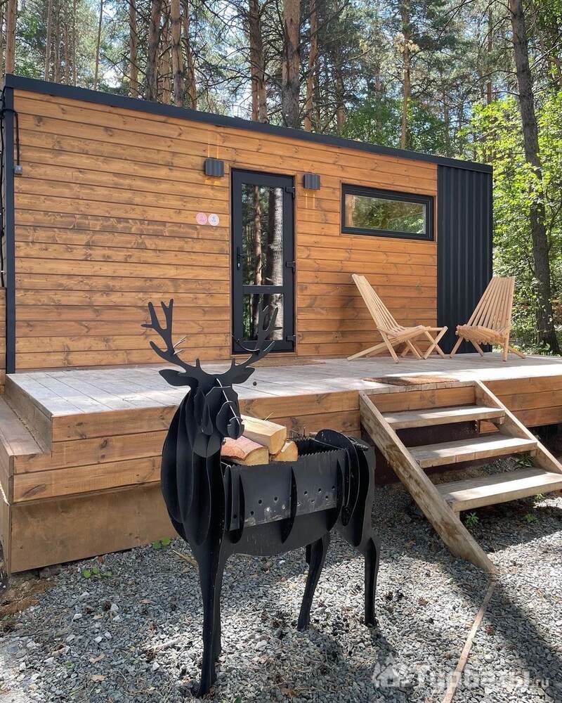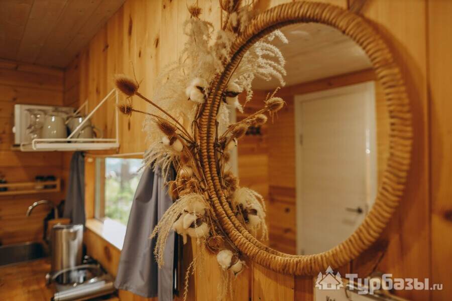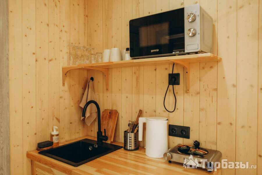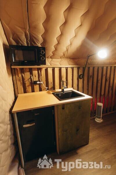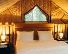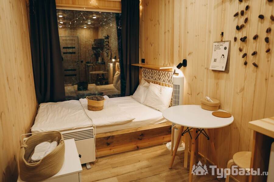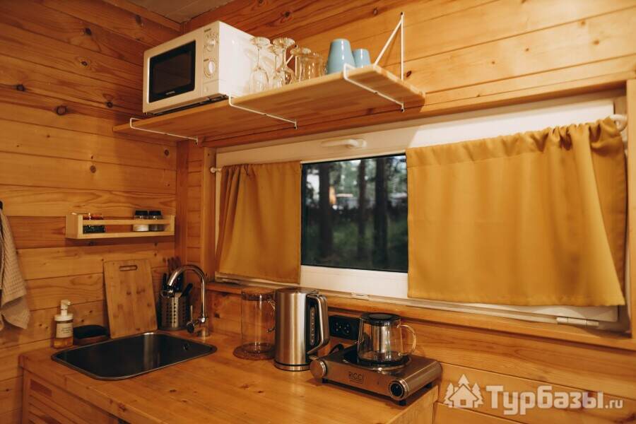 - Всего 12 домиков с панорамными окнами (разные типы: «Ива», «Пихта», «Кедр», «Тополь» и др.) и 5 сафари-тентов; у каждого домика — своя веранда и место для отдыха.