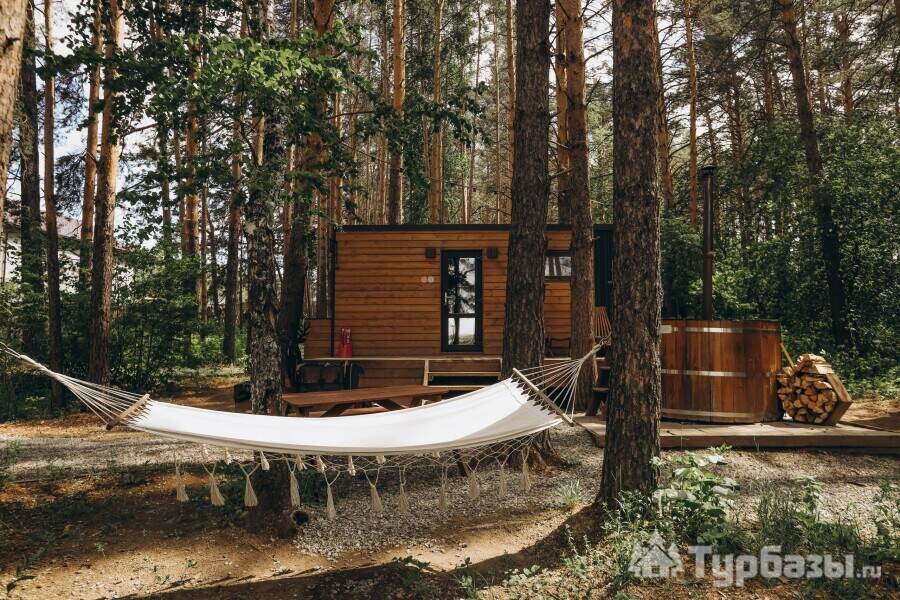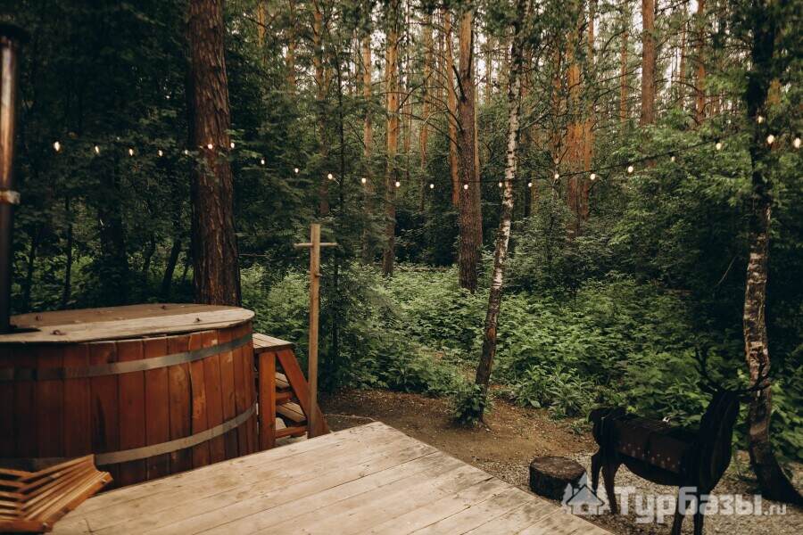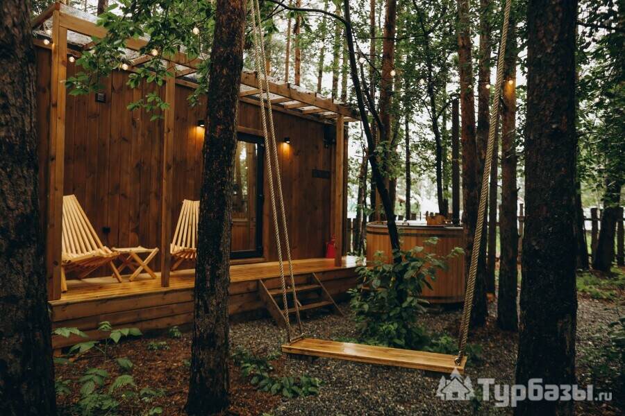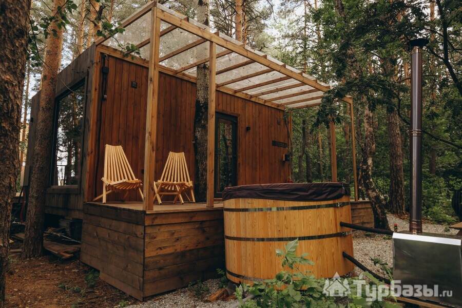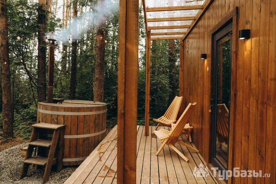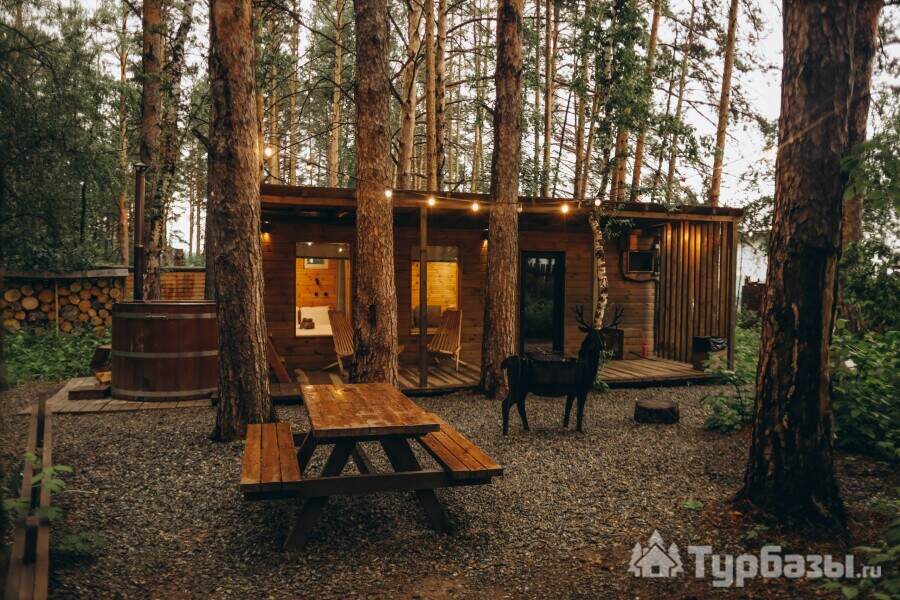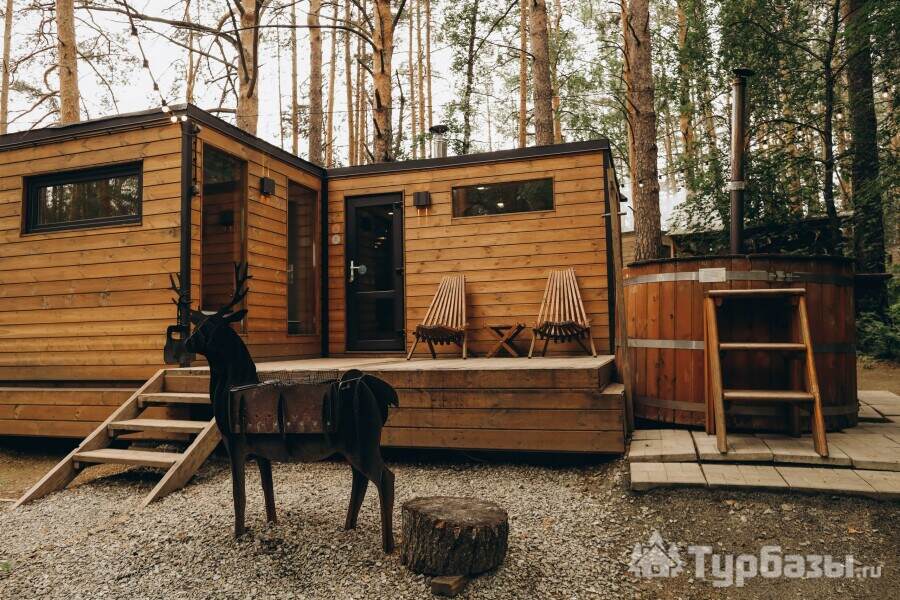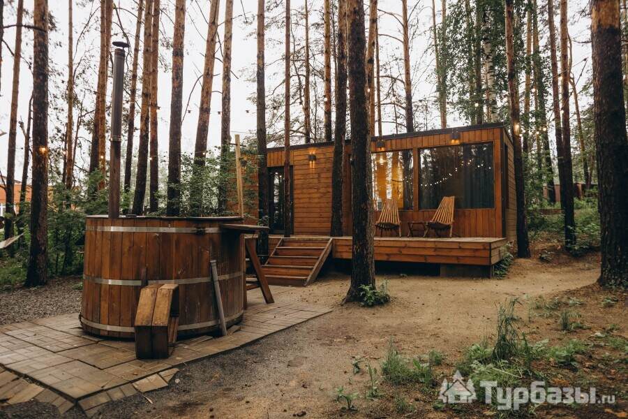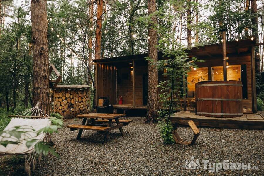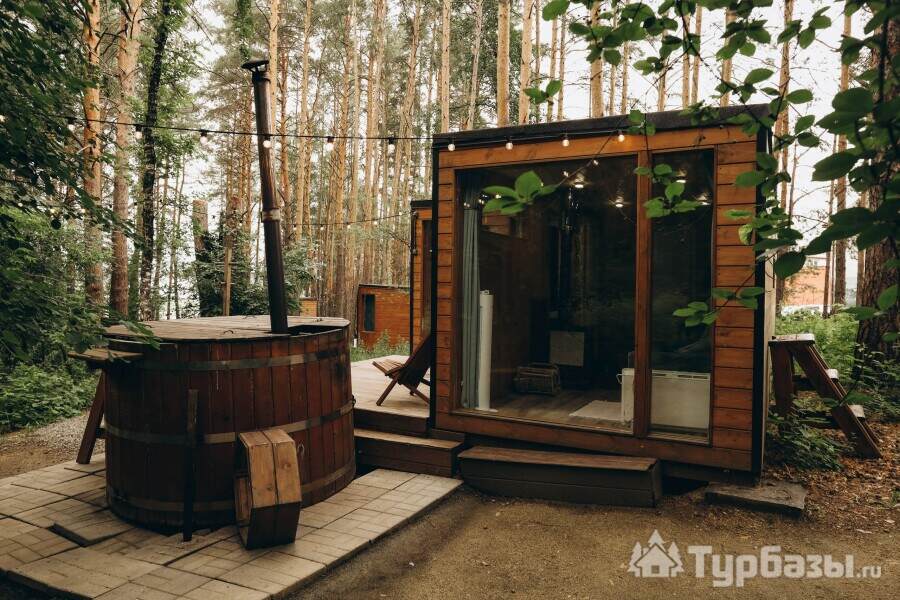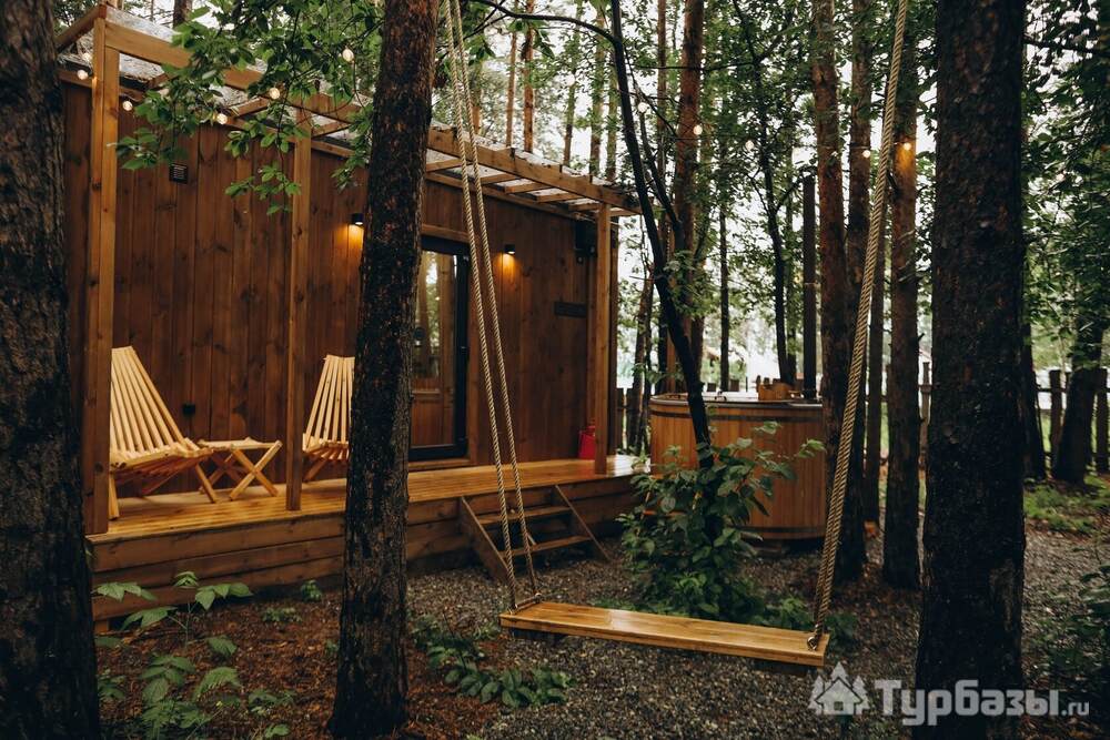 «Дверь в лес» — практичный выбор для уик-энда в сосновом лесу: панорамные домики, собственные купели у террас и простая, но тёплая инфраструктура (мангал, веранда, баня) создают понятный набор «лесного» отдыха в шаговой доступности от Екатеринбурга.