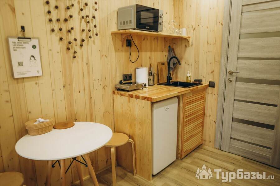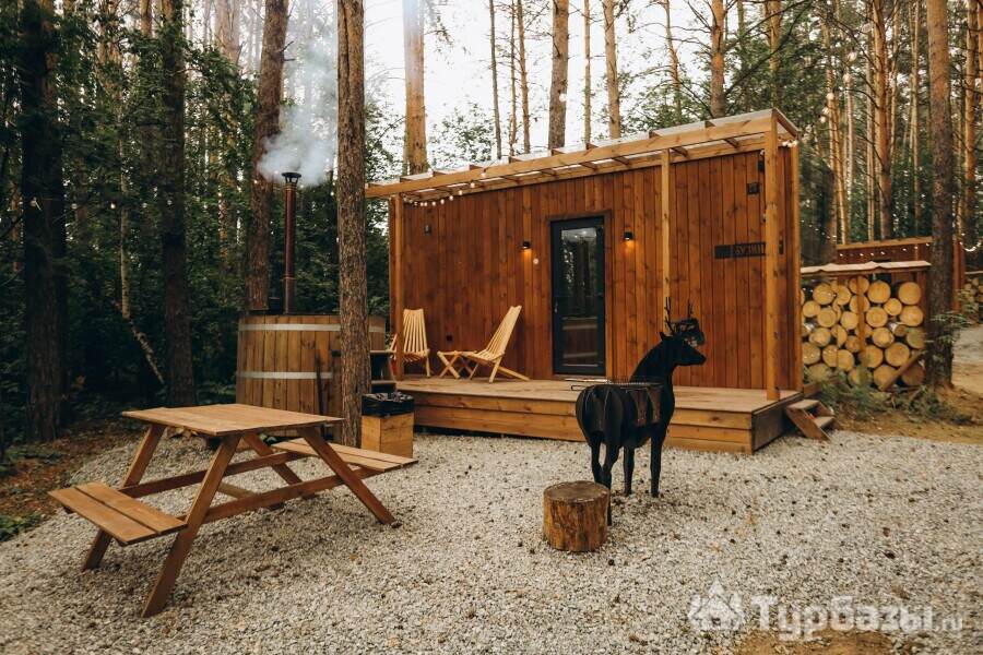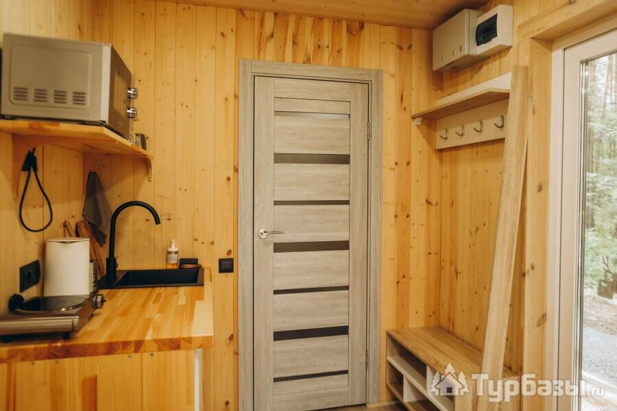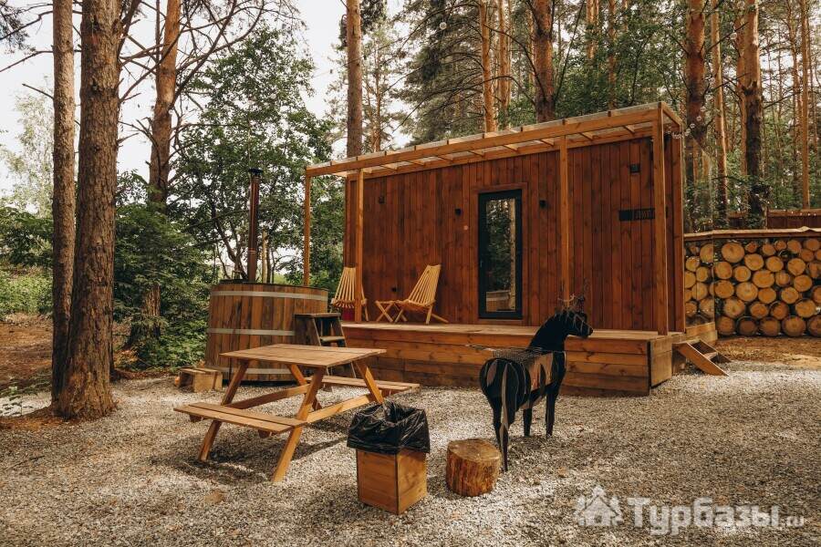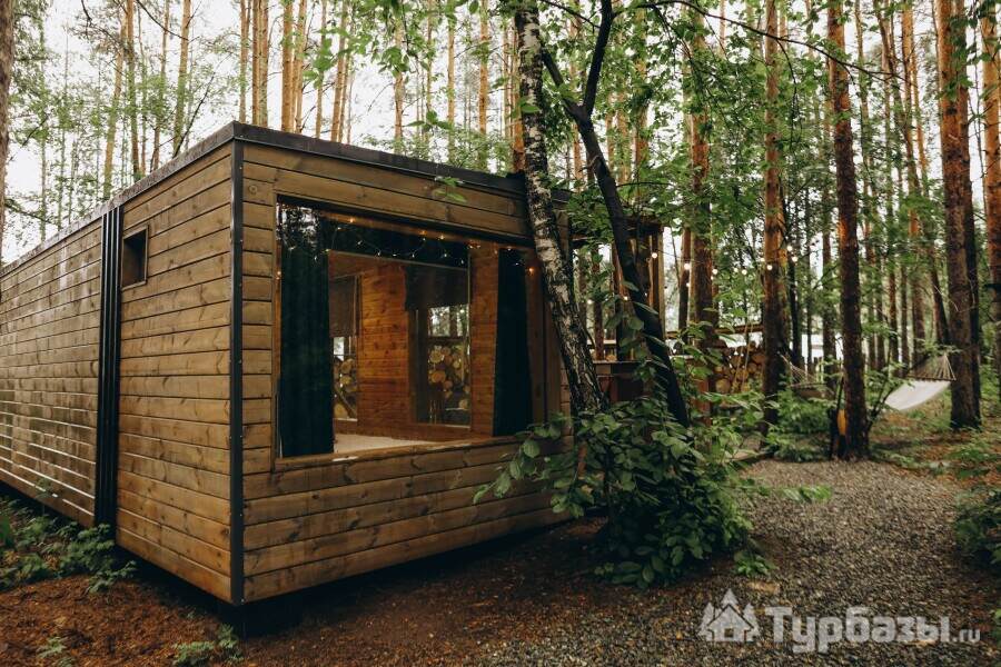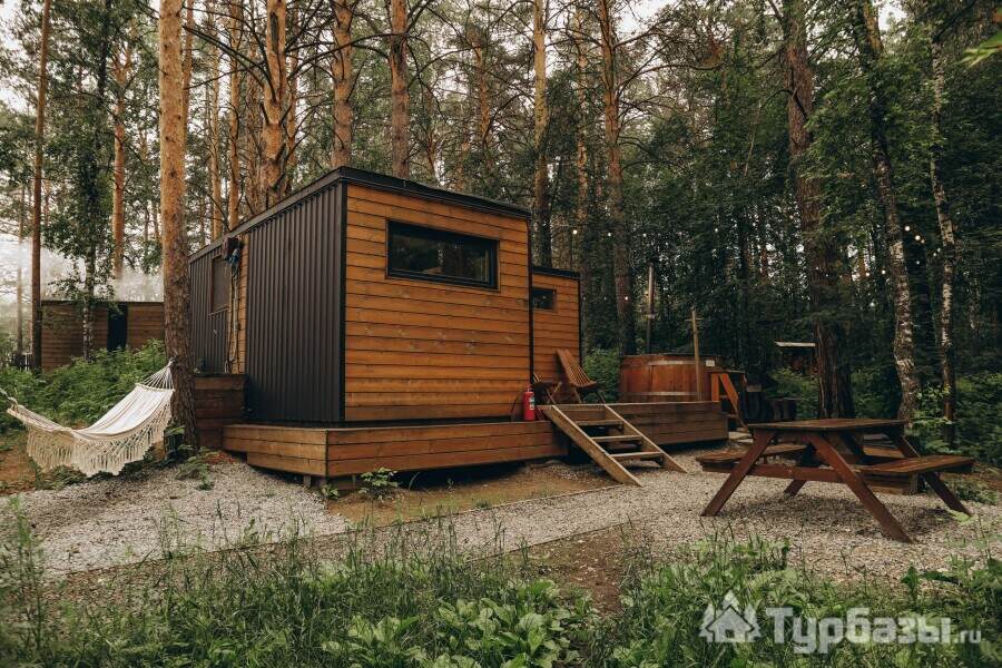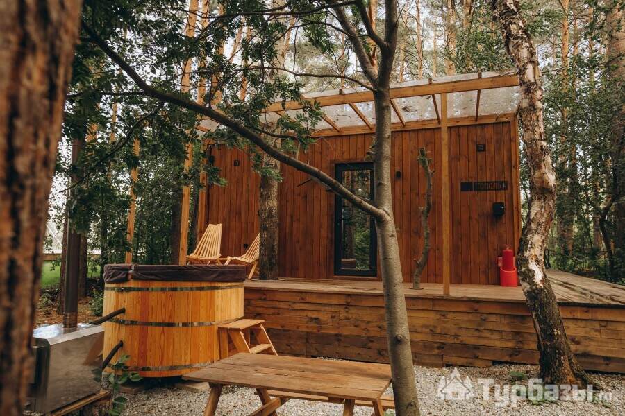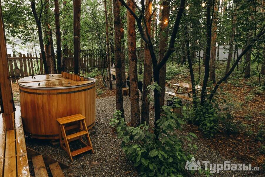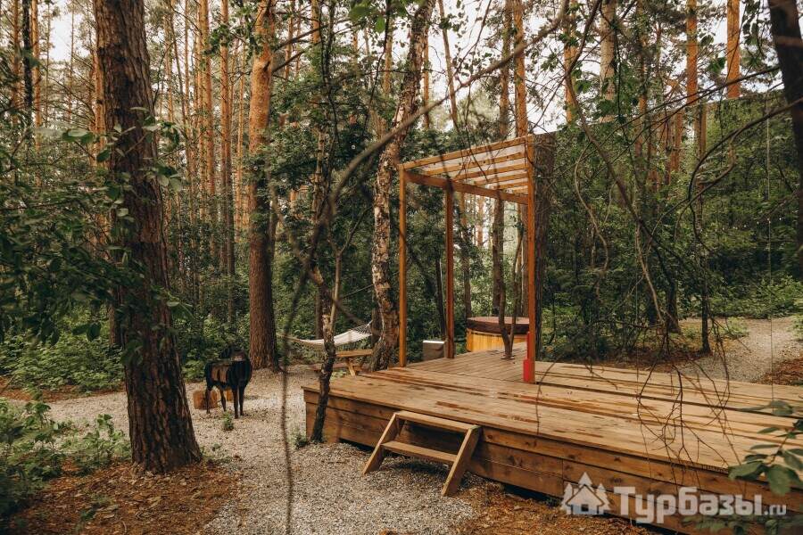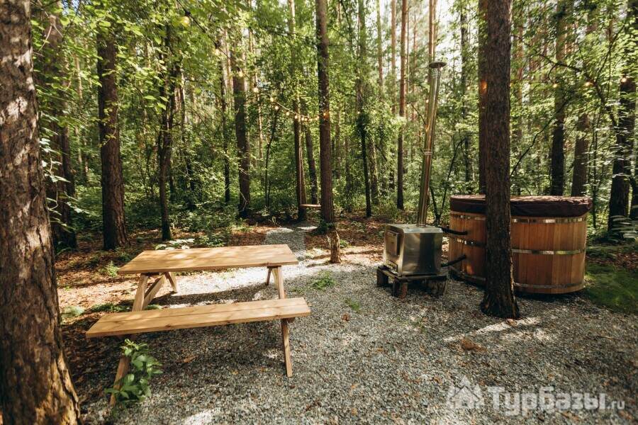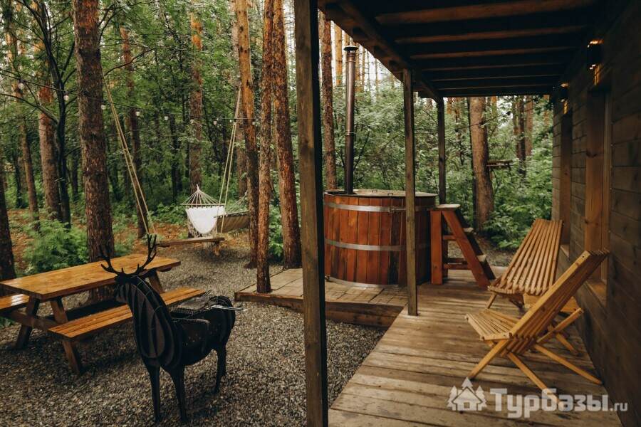 «Дверь в лес» — практичный выбор для уик-энда в сосновом лесу: панорамные домики, собственные купели у террас и простая, но тёплая инфраструктура (мангал, веранда, баня) создают понятный набор «лесного» отдыха в шаговой доступности от Екатеринбурга.