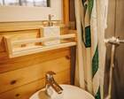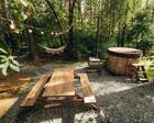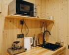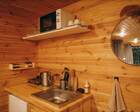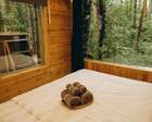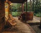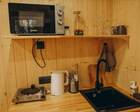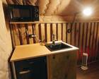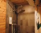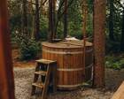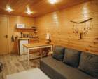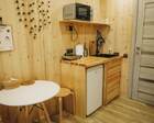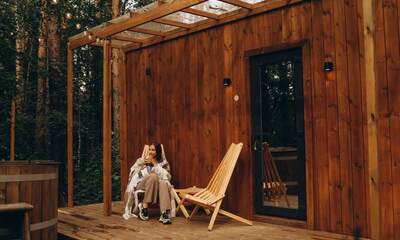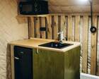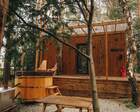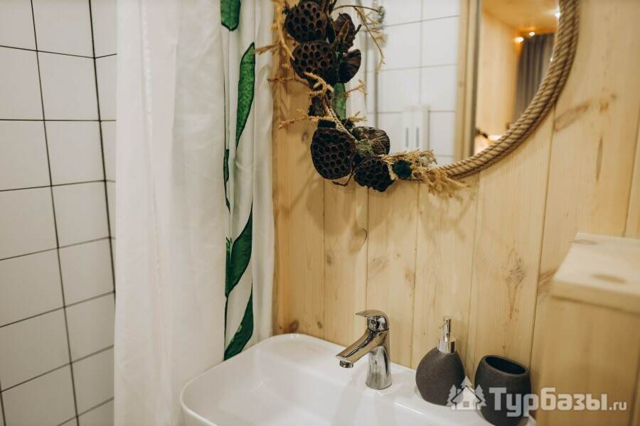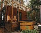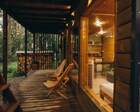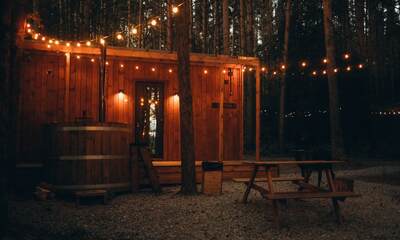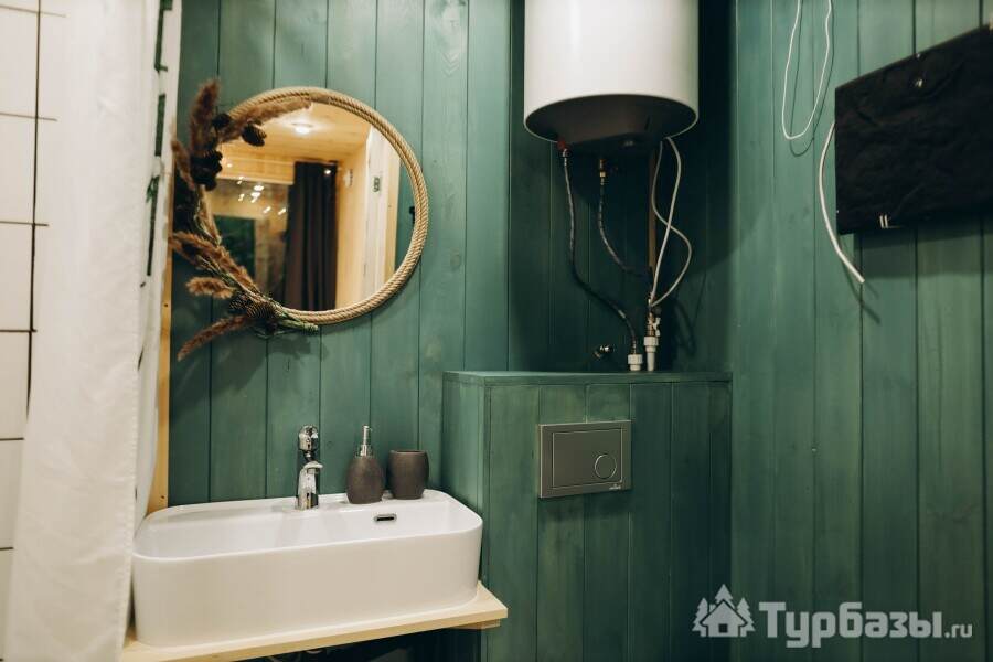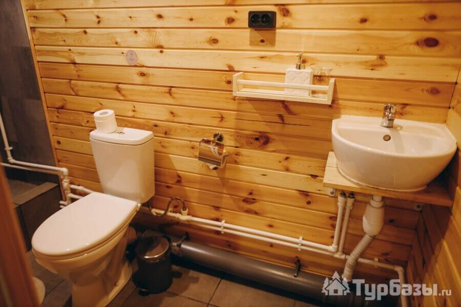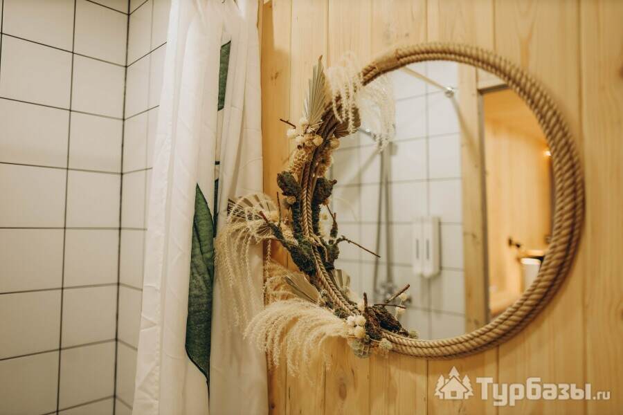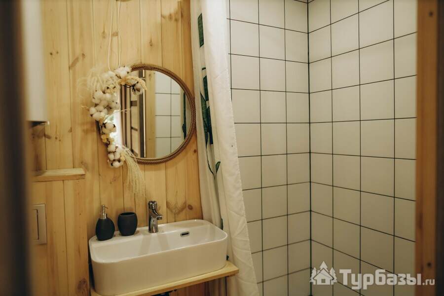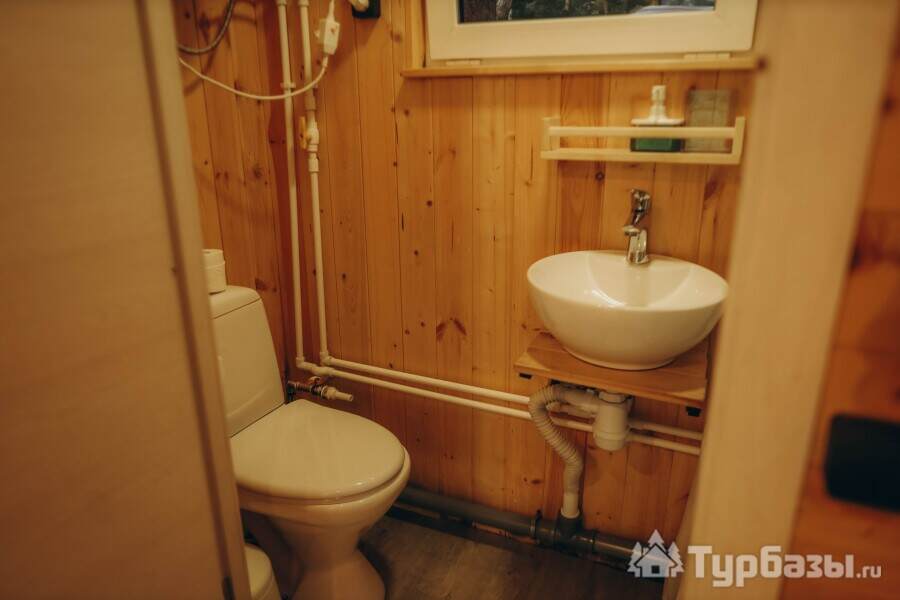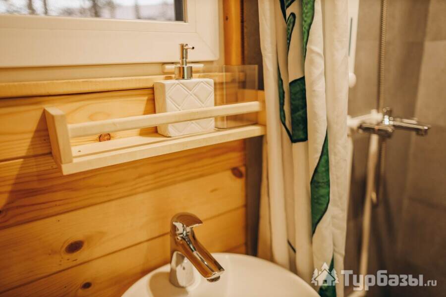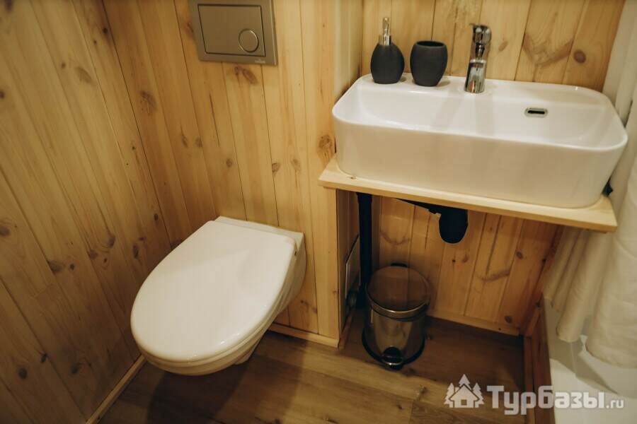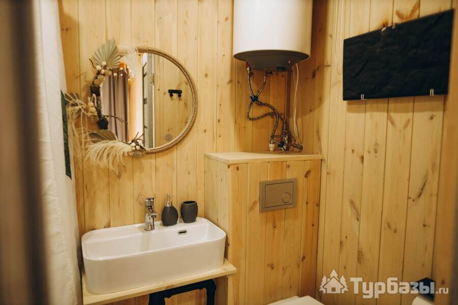 - Баня на дровах с холодной купелью доступна для аренды. Прямо перед террасой каждого домика есть своя купель, которую по запросу растапливают.