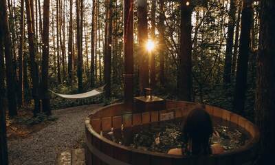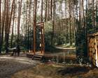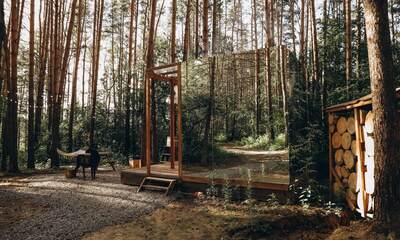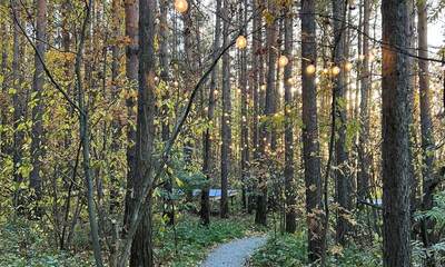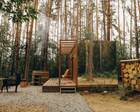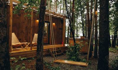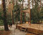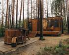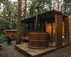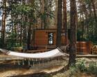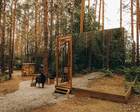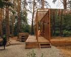 «Дверь в лес» — аккуратный загородный комплекс с 12 скандинавскими домиками и 5 сафари-тентами; проект позиционирует себя как место для спокойного отдыха у сосновой опушки с упором на банные практики и вечерние посиделки.