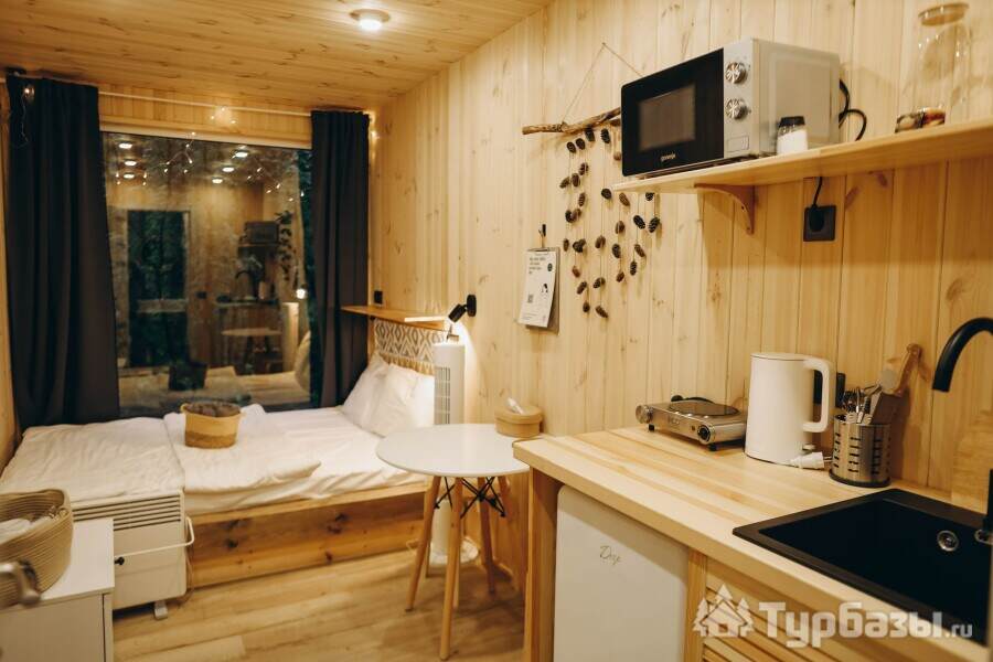- Дополнительные сервисы: завтрак с доставкой в домик, мини-проектор для фильма, моментальная печать Polaroid.