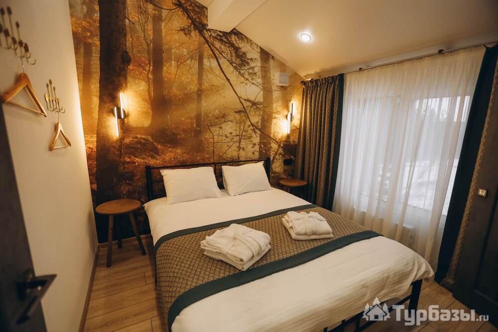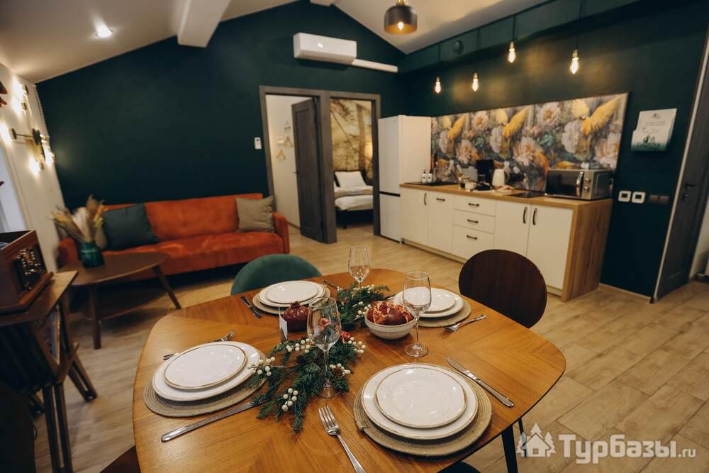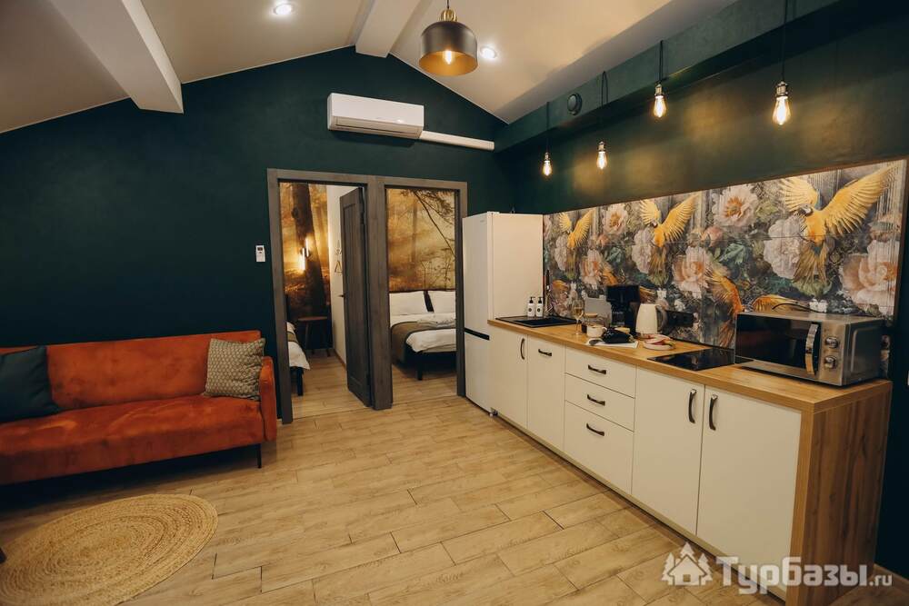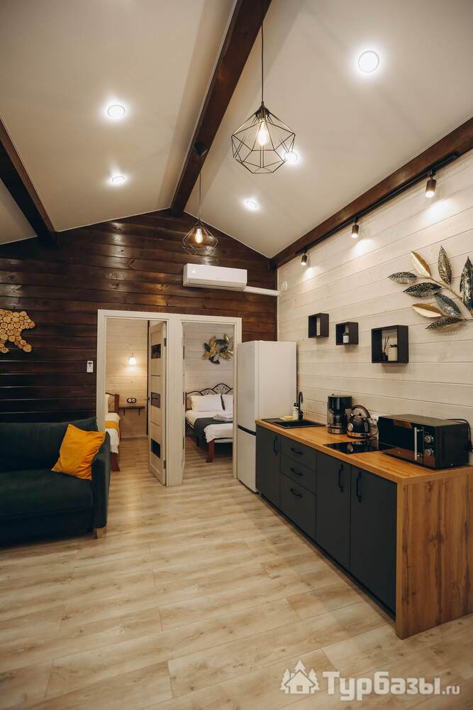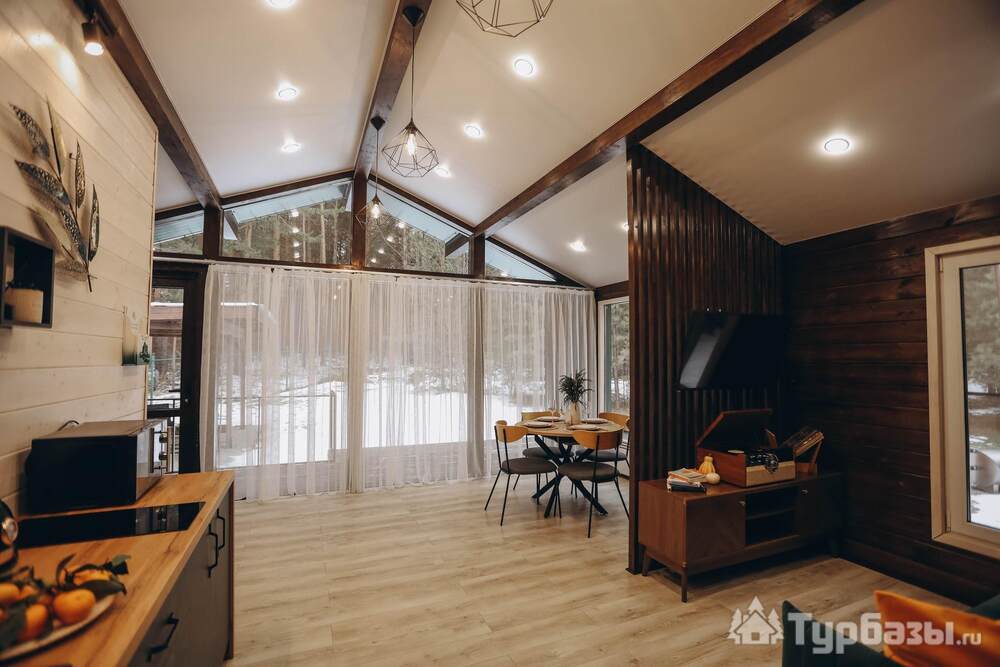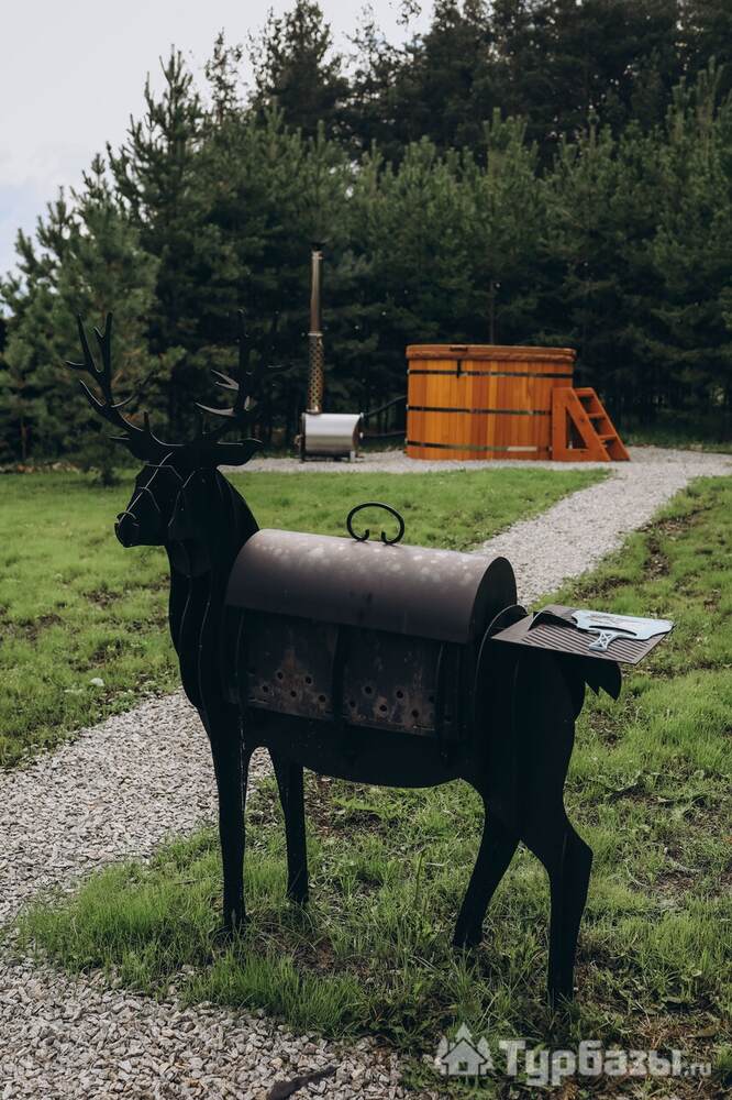 На территории — три полностью оборудованных барн-дома («Лесной Барн», «Солнечный Барн», «Уютный Барн»), каждый рассчитан на 4-х гостей. В домиках — две спальни с ортопедическими матрасами, кухня-гостиная, кондиционер, ТВ, белоснежное бельё, халаты и набор гигиены; на участках — мангальная зона, терраса и парковка на закрытой территории.