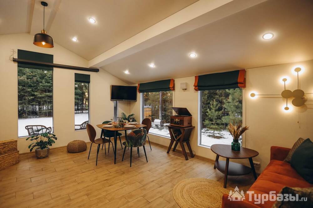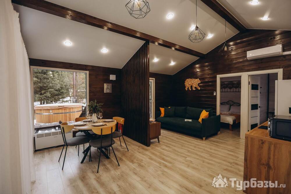Gagarka Village — аккуратный бутик-формат для тех, кто хочет сочетать эстетичный интерьер и простую, но продуманную инфраструктуру (мангал, фурако, банные опции) в лесной локации недалеко от города.