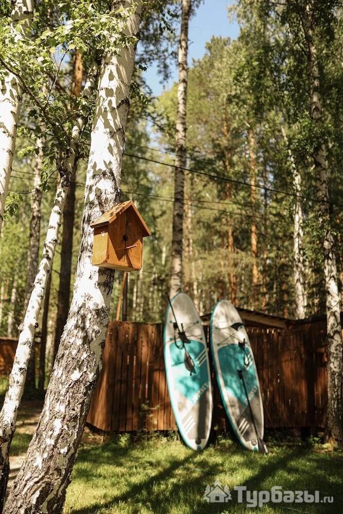 База удобна для неспешных сценариев отдыха: пешие прогулки по тропе здоровья (≈3 км вдоль берега пруда), катание на SUP-бордах, рыбалка, велопрогулки, а в зимний сезон — лыжные выходы. По соседству есть термальный источник «Баден-Баден», который можно использовать как дополнительную опцию для оздоровления. Завтрак по запросу подают на территории.