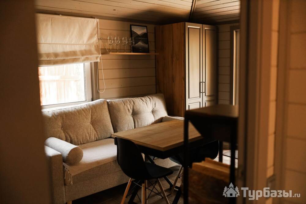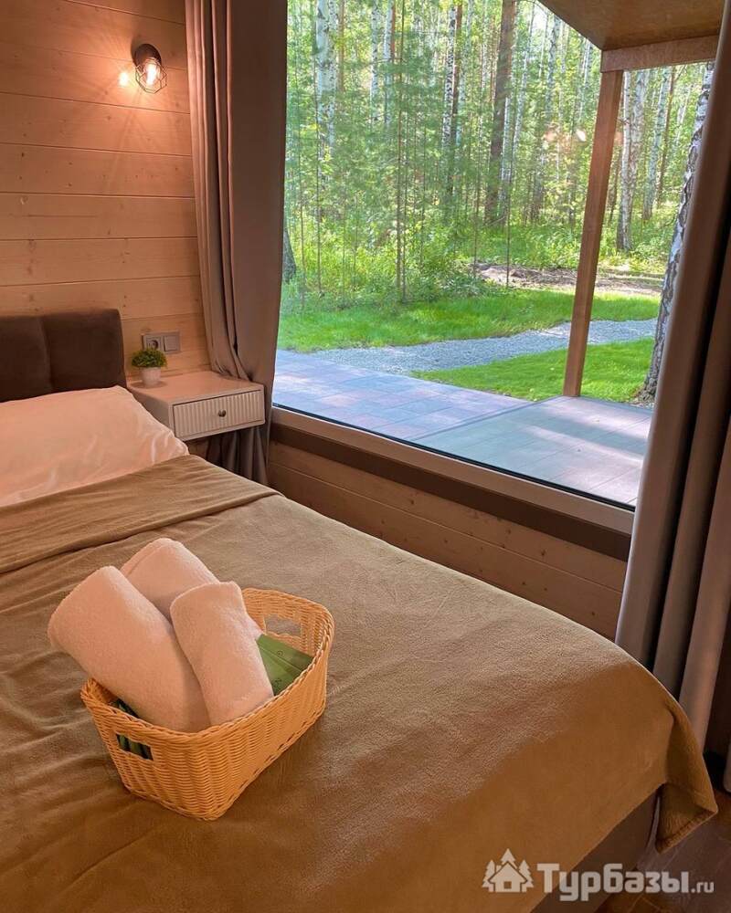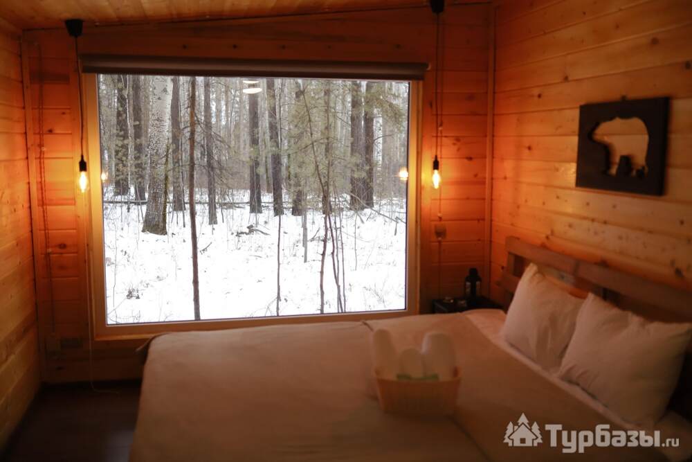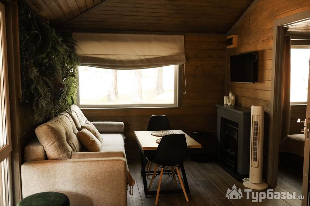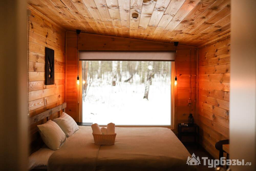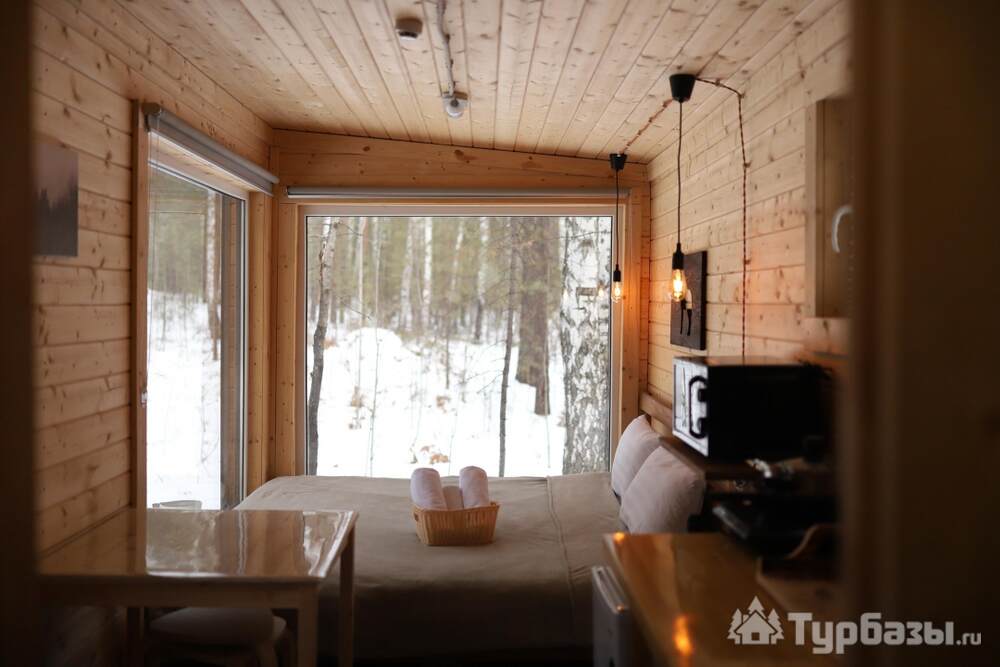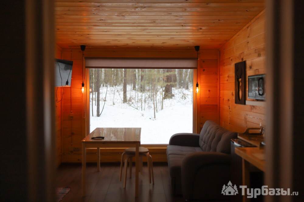 На базе представлено около десяти домиков разных форматов — от компактных студий (10–15 м²) до семейных домиков (≈36 м²). Во всех вариантах есть тёплый пол, душ и санузел, кухонная зона с техникой и мангальная площадка. В отдельных домах — панорамные окна и ванны с видом на лес; некоторые номера рассчитаны на 1–2 человека, другие — на 4 человек. Для гостей предусмотрена бесплатная парковка и фотозоны на территории.