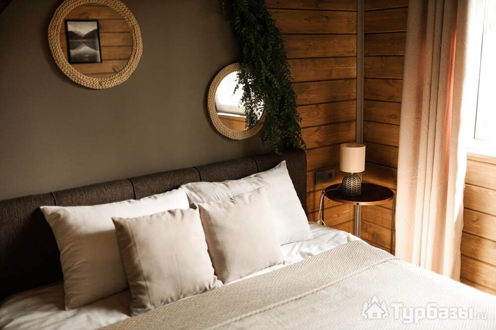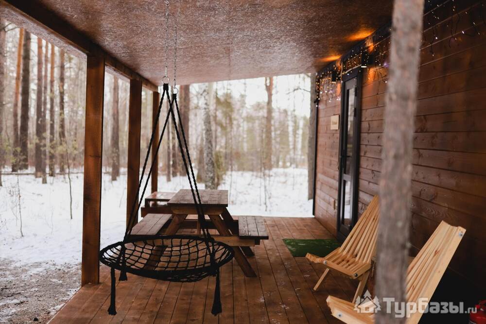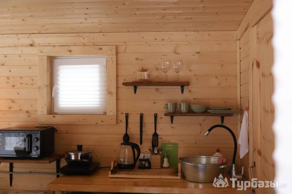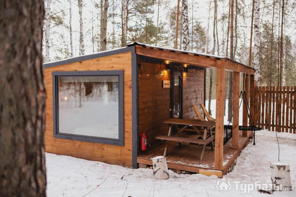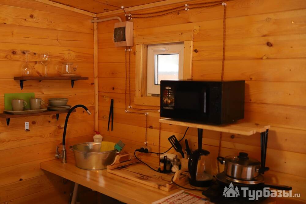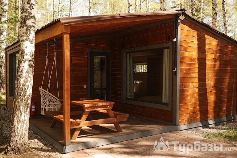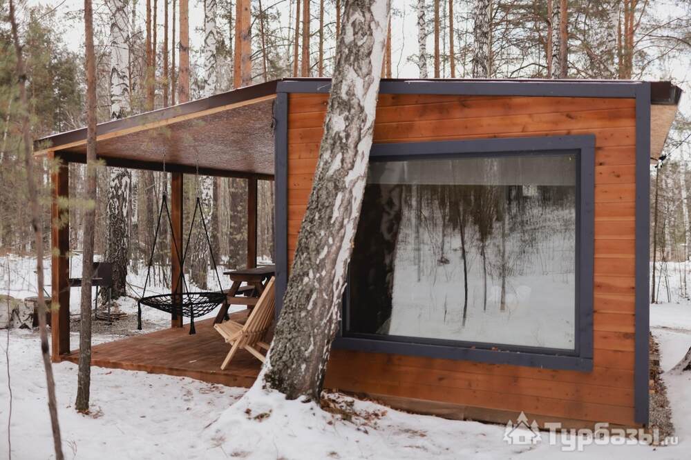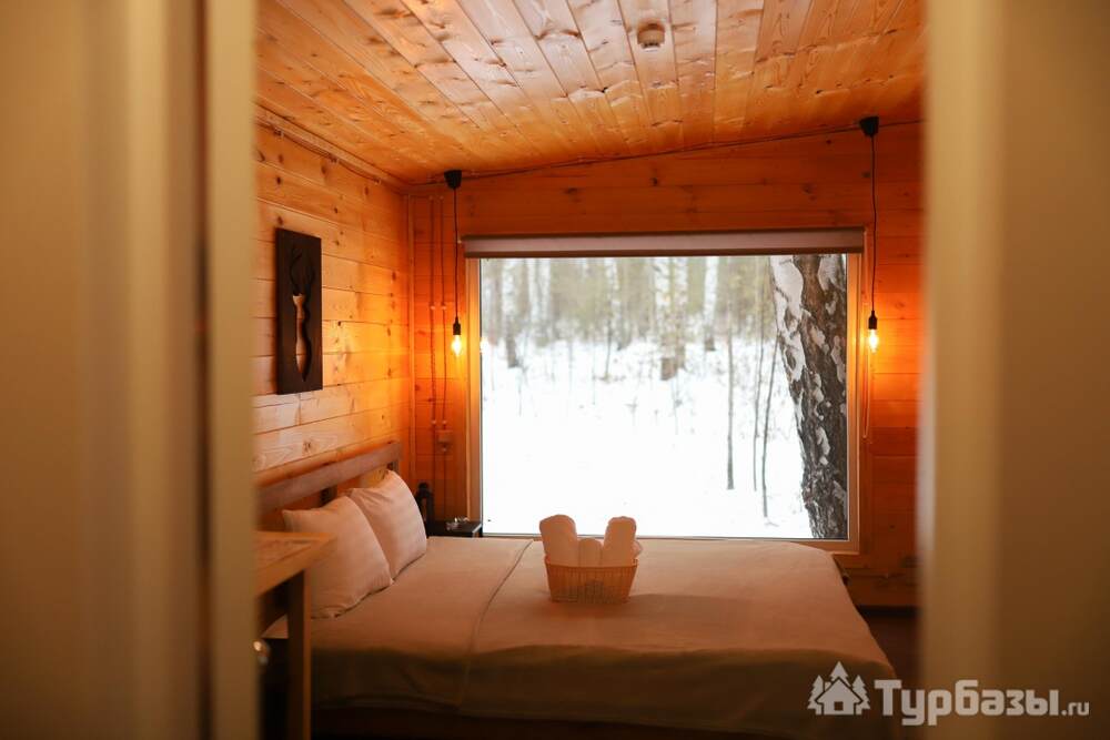 На базе представлено около десяти домиков разных форматов — от компактных студий (10–15 м²) до семейных домиков (≈36 м²). Во всех вариантах есть тёплый пол, душ и санузел, кухонная зона с техникой и мангальная площадка. В отдельных домах — панорамные окна и ванны с видом на лес; некоторые номера рассчитаны на 1–2 человека, другие — на 4 человек. Для гостей предусмотрена бесплатная парковка и фотозоны на территории.