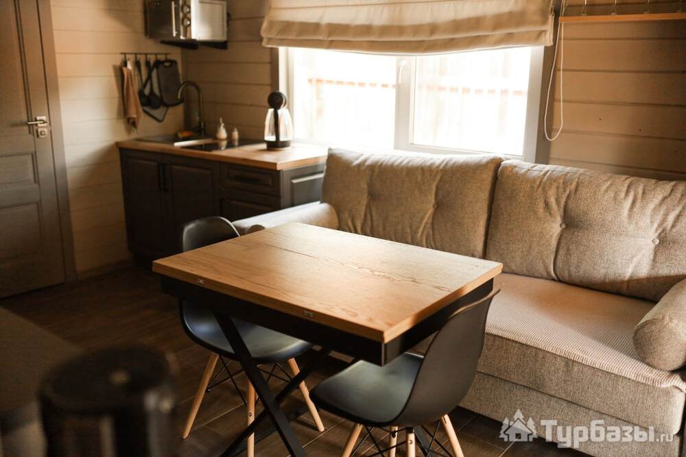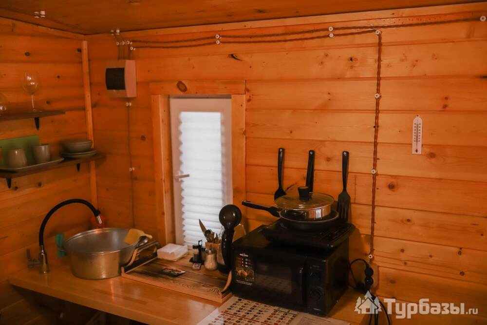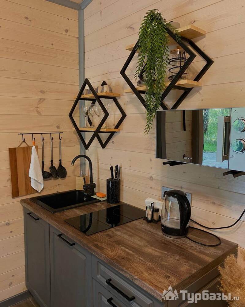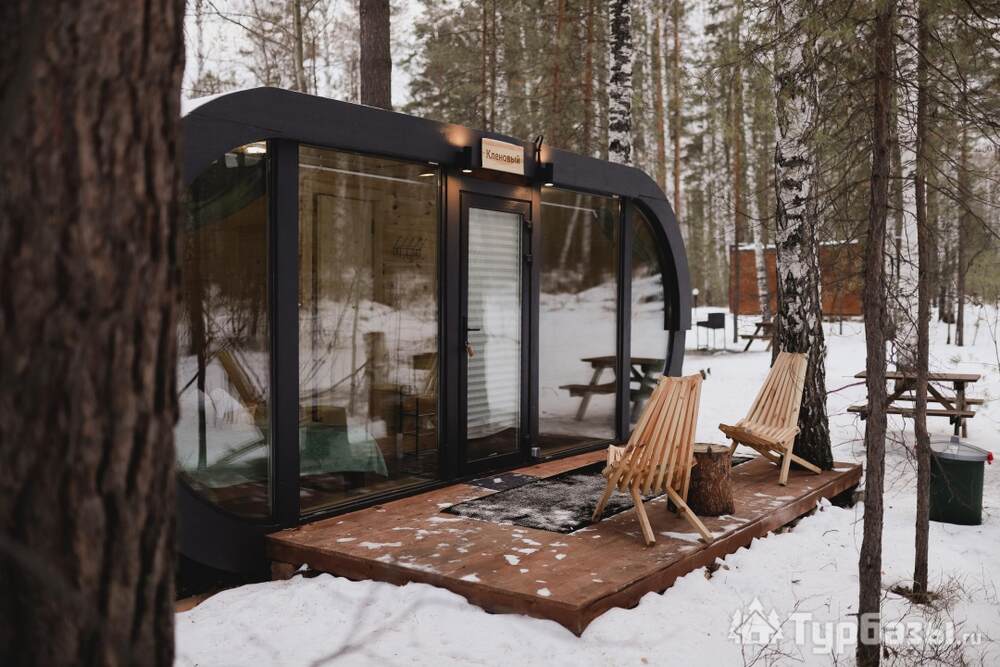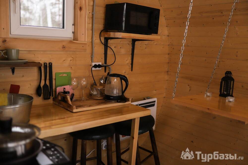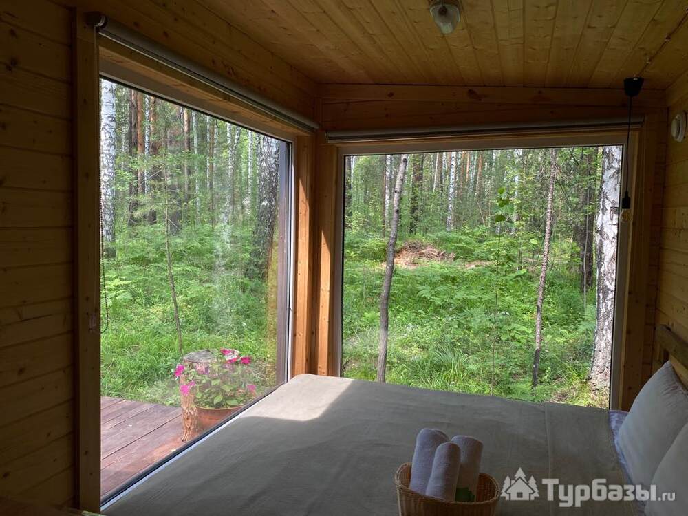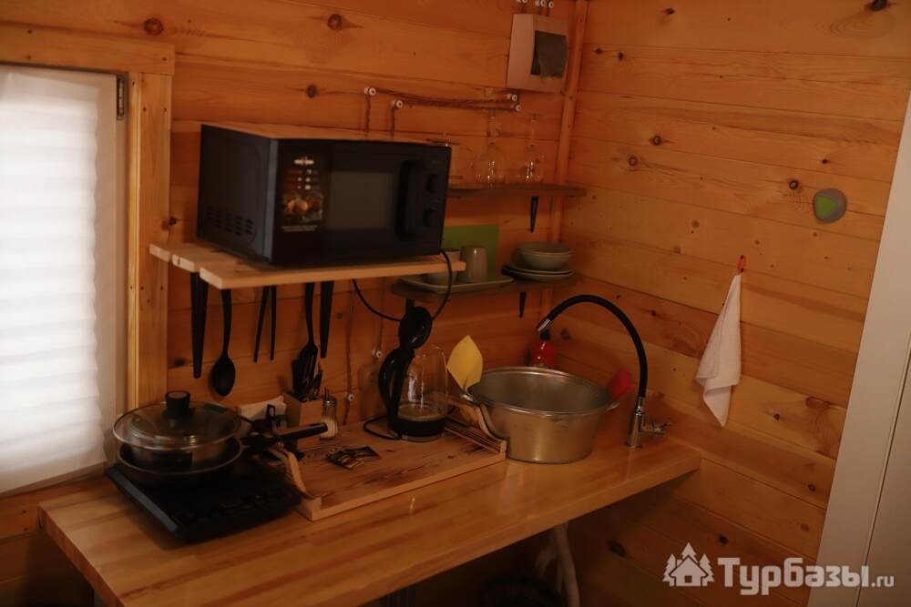 На базе представлено около десяти домиков разных форматов — от компактных студий (10–15 м²) до семейных домиков (≈36 м²). Во всех вариантах есть тёплый пол, душ и санузел, кухонная зона с техникой и мангальная площадка. В отдельных домах — панорамные окна и ванны с видом на лес; некоторые номера рассчитаны на 1–2 человека, другие — на 4 человек. Для гостей предусмотрена бесплатная парковка и фотозоны на территории.