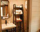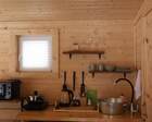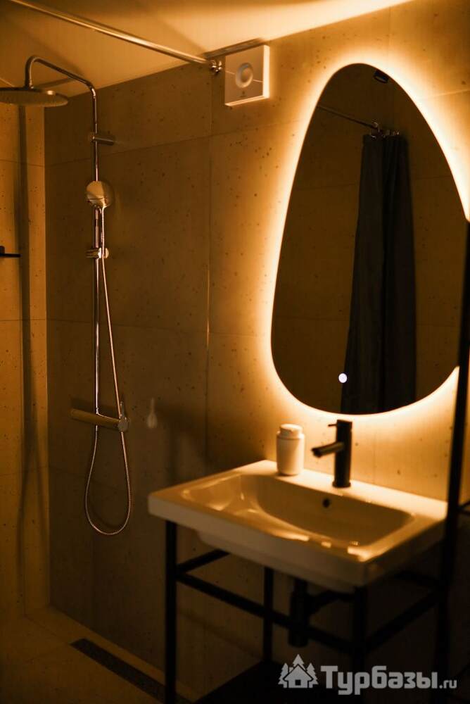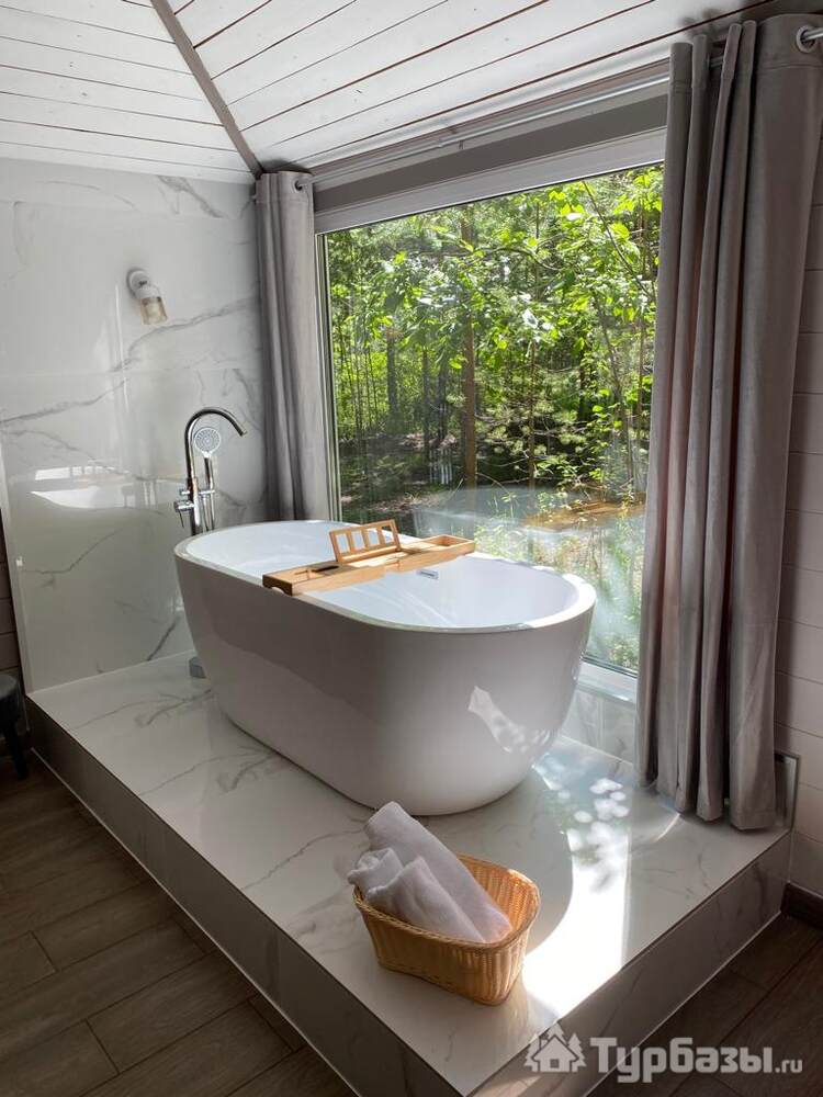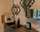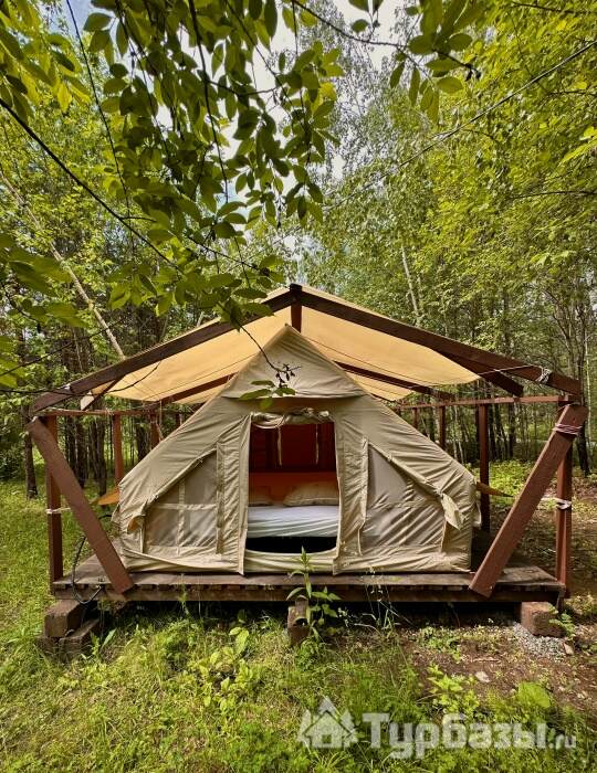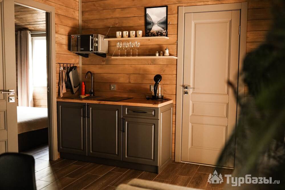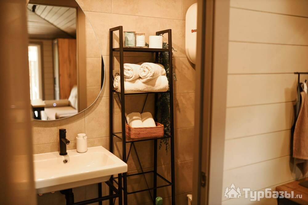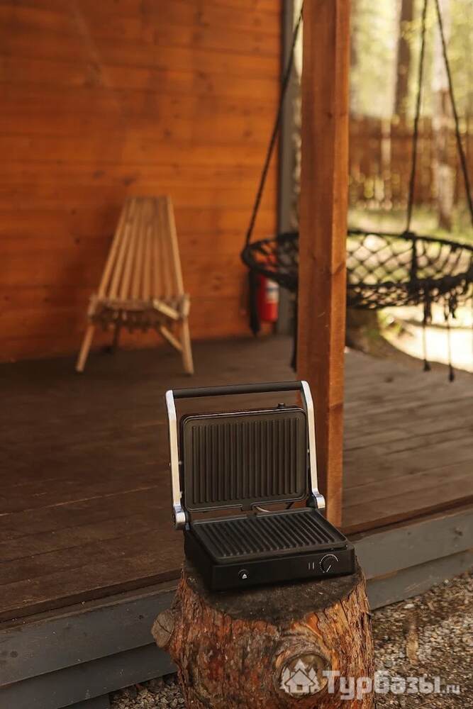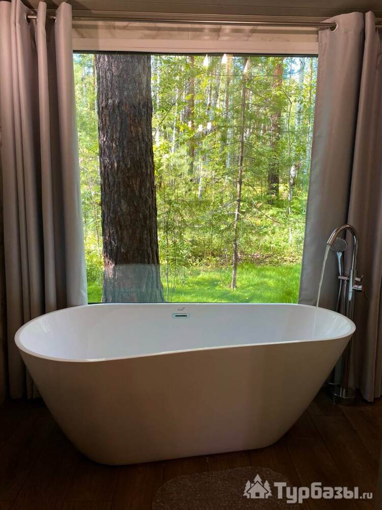 На базе представлено около десяти домиков разных форматов — от компактных студий (10–15 м²) до семейных домиков (≈36 м²). Во всех вариантах есть тёплый пол, душ и санузел, кухонная зона с техникой и мангальная площадка. В отдельных домах — панорамные окна и ванны с видом на лес; некоторые номера рассчитаны на 1–2 человека, другие — на 4 человек. Для гостей предусмотрена бесплатная парковка и фотозоны на территории.