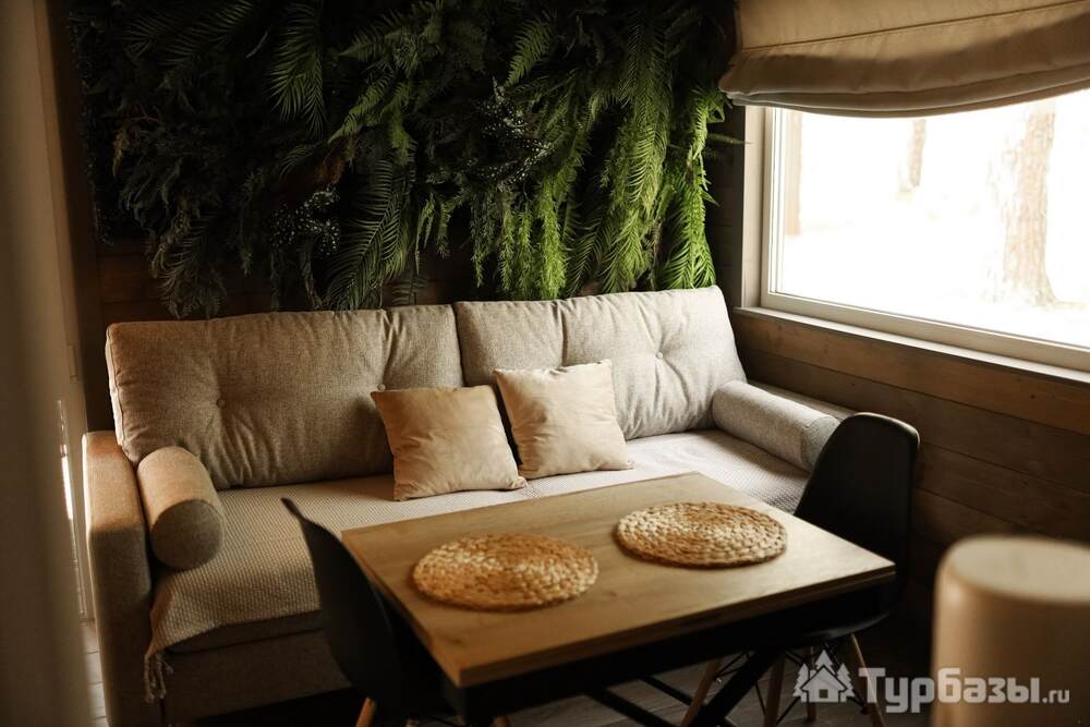 «Лесотерапия» — практичный выбор для тех, кто хочет получить полный набор «лесной» релакс-уик-энда: комфортные домики с базовой кухней, баня и купели, пляжно-водная активность и короткие лесные маршруты в шаговой доступности от гостиницы.