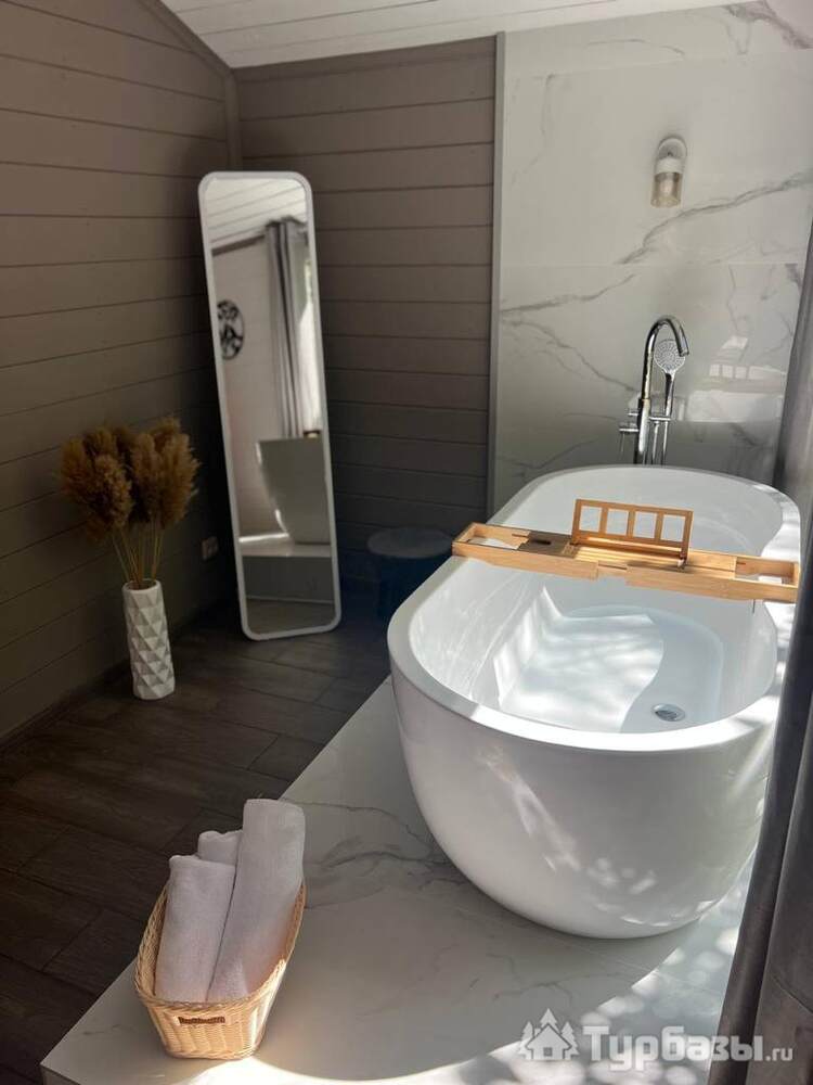 На территории работает банный комплекс с двумя купелями (тёплая и холодная — холодная купель доступна в тёплый сезон). В сервис включены веники, халаты и полотенца. Ресепшн работает в дневной период, на территории — сторож, а для гостей подготовлены зоны для фотосъёмки и детская площадка.