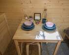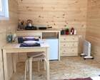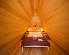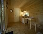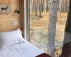- Мини-дома "шалаш". Оснащен кроватью и спилами в виде тумбочек. Можно насладиться единением с природой. Электричество есть.