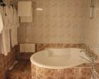 № 33. Двухзонированный номер с кондиционером, телефоном, телевизором, минибаром, с большой кроватью, которая может трансформироваться в две раздельные (с прикроватными тумбочками), шкафом-купе, письменным столом, телевизором в каждой зоне. В гостиной зоне угловой диван со столиком и большой обеденный стол. В ванной комнате угловая ванна, ванные принадлежности, фены, халаты, тапочки.