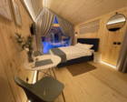 К услугам гостей коттеджи-дуплекс, отдельно стоящие дома квартирного типа, деревянные срубы, гостевые дома и эко модули с видом на реку. Номера оформлены в скандинавском стиле, оборудованы ортопедическими матрасами «Аскона». В каждом доме есть кухонная зона, в распоряжении гостей: СВЧ, чайник, посуда , столовые приборы. Возле каждого дома имеется отдельная мангальная площадка. В стоимость проживания входит — завтрак по системе «шведский стол».