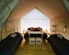 Проживают гости в глэмпах 2-х видов: в 2-местных, где возможна установка дополнительного спального места, и в 4-местных. Из мебели стоят кровати отельного типа, столы и стулья, тумбочки при кроватях с ночными лампами. Матрасы на кроватях ортопедические. Имеется возможность безопасной сохранности личных вещей отдыхающих.