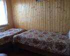 На огороженной территории базы находятся 5 гостевых домиков. Они рассчитаны на размещение 2-4, 4-7, 8-10 человек. В каждом домике есть санузел, кухня, несколько спальных помещений. Большая компания размещается в 2 –этажном, отапливаемом здании. На первом этаже оборудована большая гостиная с камином, телевизором. Здесь же находится просторная столовая. Второй этаж занимают 3 спальни, комната отдыха с караоке, бильярдом, настольным футболом, два санузла с ванной, душем.