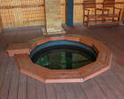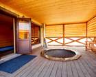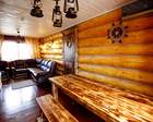 На первом этаже: Кухня-гостиная с диваном (2 спальных места), кухонным гарнитуром, 3 больших стола с лавками (вместимость до 24 человек), большой тв, место для танцев и туалетная комната. Баня на дровах с комнатой отдыха (двуспальный диван). Из комнаты отдыха выход на террасу с уникальной баней-чаном (большой чан с горячей водой на открытом воздухе, вместимостью до 5-6 человек, подогревается с помощью дров) после бани-чана можно окунуться в купель с ледяной водой.