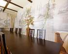 На первом этаже: Кухня-столовая с кухонным гарнитуром, столами и стульями (вместимость за столом до 15 человек), большой тв, диван (2 спальных места) 2 туалетных комнаты, зал с огромным диваном (2 спальных места) и детской игровой зоной. Зал торжеств с 6 круглыми столами (вместимость до 36 человек), панорамные окна, тв.