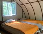 Каркасные бунгало. Внутри деревянные кровати, матрасы, свежее постельное белье, электричество, обогреватель ( по запросу) , освещение , стулья, вешалки, антимоскитные сетки, вид на лес, парк, озеро. Воды и туалетов в бунгало нет. Летний душ, баня на дровах, оборудованные туалета находятся на территории глэмпинга. Уже включено в стоимость проживания. В вашем распоряжении: парковка на закрытой территории,перевозка с берега на остров и обратно (в лодке не больше 5 человек, на катере не больше 6) с учетом вещей,распоряжение кухней (газовая плита, холодильник, погреб, мангал, гриль, казаны, вся необходимая посуда), телевизор на общей площадке, озеро с чистой, прозрачной водой, катамаран, волейбольная площадка, бадминтон, батут, летний душ, тренажерная площадка, Удочки и снасти для рыбалки.